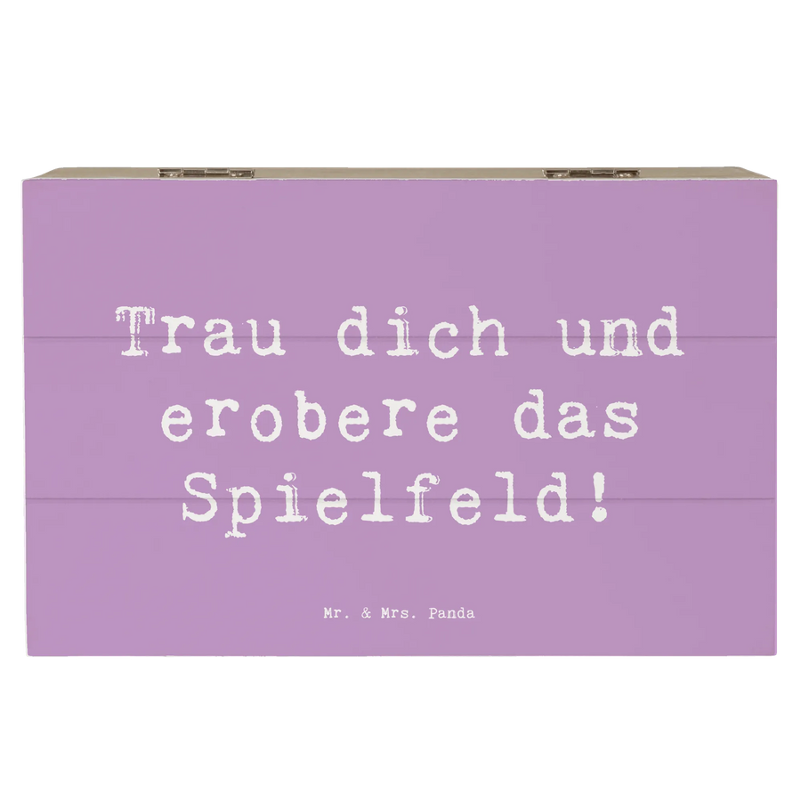 Suchst du ein Geschenk, das Mut macht und lange erinnert? Die Holzkiste „Sich in einer neuen Sportart versuchen“ aus der Mutmacher-Kollektion von Mr. & Mrs. Panda ist genau so ein Stück. Mit dem liebevollen Spruch „Trau dich und erobere das Spielfeld!“ auf dem Deckel wird diese Schatulle zur kleinen Mutquelle für Kinder, Jugendliche oder Erwachsene, die den Schritt in eine neue Sportart wagen möchten.