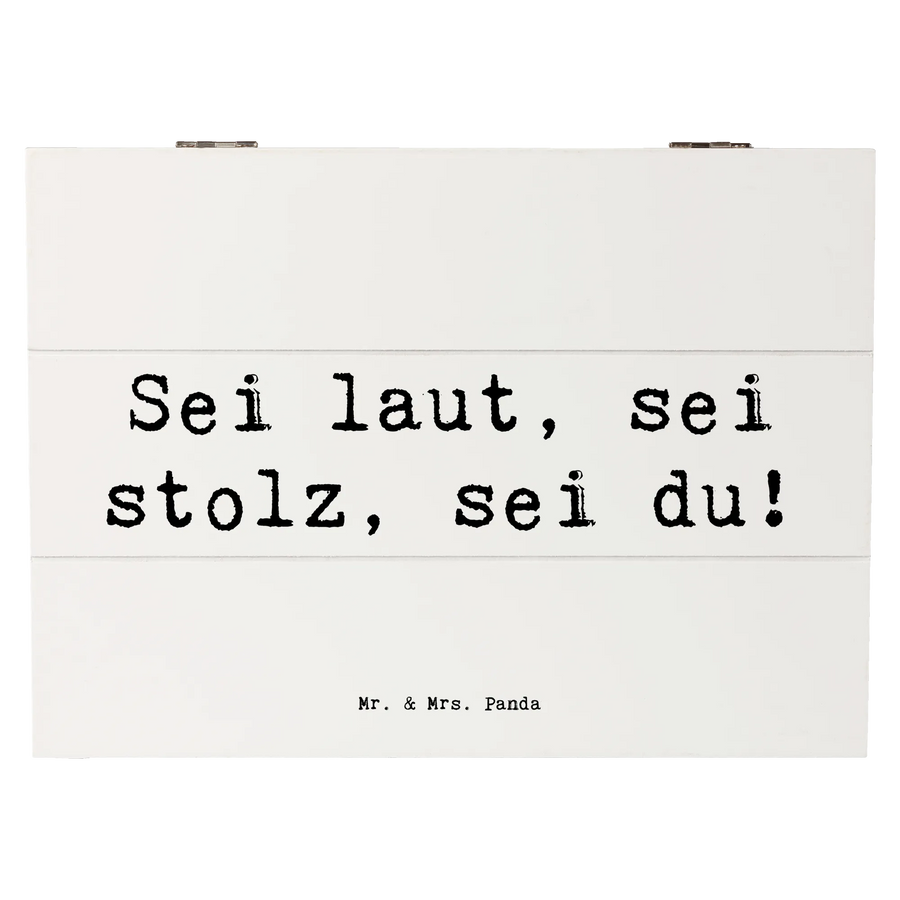 Ob als persönliche Aufbewahrungsbox oder als kreatives Geschenk, die Holzkiste von Mr. & Mrs. Panda vermittelt eine Botschaft der Zuversicht und soll Mut machen, zu seinen Meinungen zu stehen. Perfekt für jeden, der seine Erinnerungen mit Stil aufbewahren möchte.