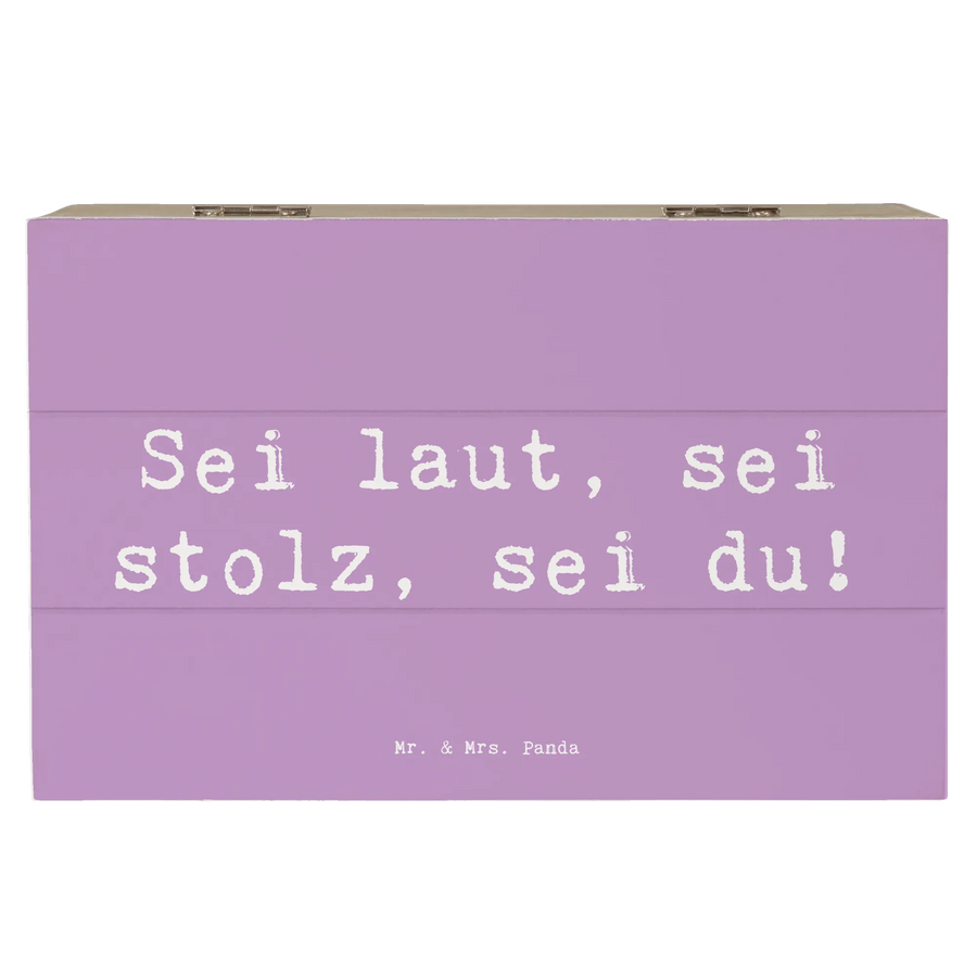 Entdecke die zauberhafte Holzkiste "Mutig zu seinen Meinungen stehen" aus der exklusiven Kollektion Mutmacher von Mr. & Mrs. Panda. Diese wunderschöne Aufbewahrungskiste aus robuster Premium Hartfaser ist nicht nur stabil, sondern auch ein echter Hingucker. Mit einem liebevollen Slogan "Sei laut, sei stolz, sei du!" inspiriert sie dazu, das eigene Wesen zu feiern und sich selbst treu zu bleiben.