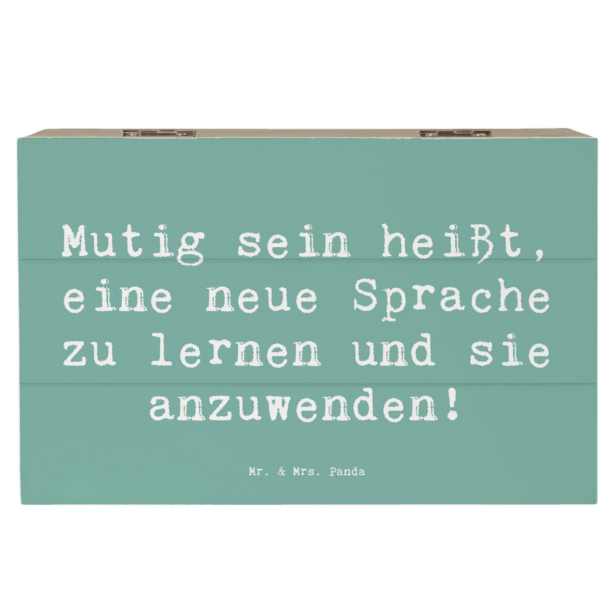 Die wunderschöne Holzkiste "Sprachen lernen und anwenden" von Mr. & Mrs. Panda ist das perfekte Geschenk für all diejenigen, die sich auf dem Weg zum Sprachenlernen befinden oder einfach ihren Mut stärken möchten! Ob für Freunde, die eine neue Sprache lernen, oder für Kinder, die ihre ersten Worte in einer Fremdsprache entdecken – diese Kiste ist mehr als nur ein Aufbewahrungsort für deine Schätze. Mit dem inspirierenden Spruch „Mutig sein heißt, eine neue Sprache zu lernen und sie anzuwenden!“ wird dein Geschenk zu einer ständigen Erinnerung daran, die eigene Komfortzone zu verlassen und Neues zu wagen.