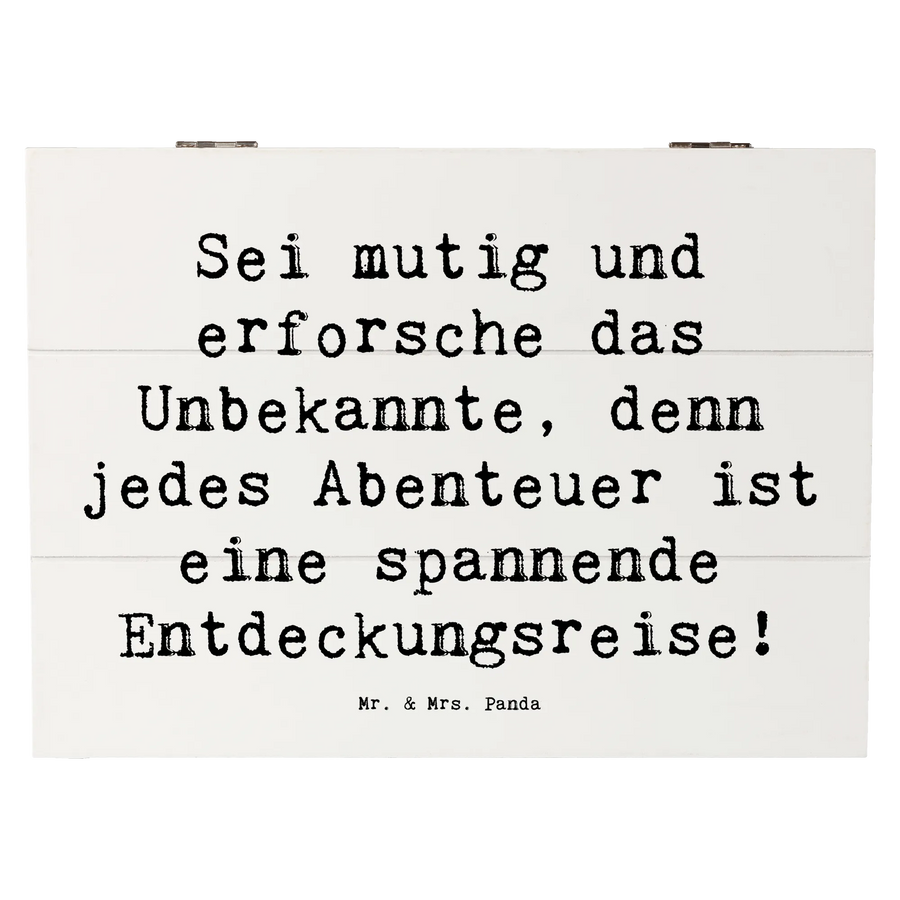 Entdecke die wunderschöne Holzkiste "Unbekannte Orte erkunden" aus der besonderen Mutmacher-Kollektion von Mr. & Mrs. Panda! Diese bezaubernde Kiste ist mehr als nur ein Aufbewahrungsort – sie ist der perfekte Platz für all deine wertvollen Schätze und Erinnerungen.