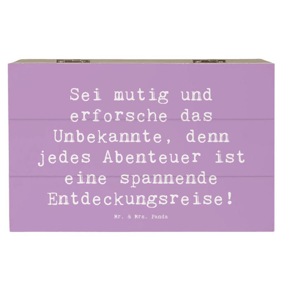 Entdecke die wunderschöne Holzkiste "Unbekannte Orte erkunden" aus der besonderen Mutmacher-Kollektion von Mr. & Mrs. Panda! Diese bezaubernde Kiste ist mehr als nur ein Aufbewahrungsort – sie ist der perfekte Platz für all deine wertvollen Schätze und Erinnerungen.