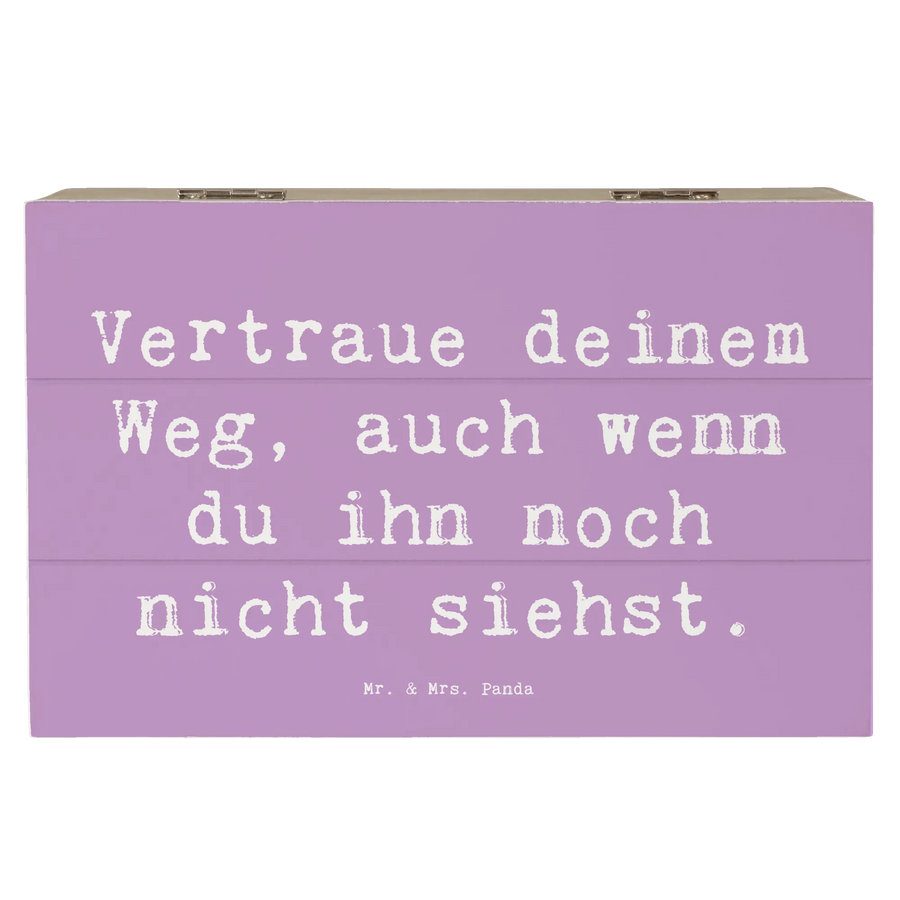 Die Holzkiste "Ungewissheit bei der Zukunftsplanung akzeptieren" aus der 'Mutmacher'-Kollektion von Mr. & Mrs. Panda ist das perfekte Geschenk, um Menschen zu inspirieren und zu ermutigen! Mit ihrem liebevollen Design und dem kraftvollen Slogan "Vertraue deinem Weg, auch wenn du ihn noch nicht siehst" ist sie eine wundervolle Erinnerung daran, dass der Weg oft wichtiger ist als das Ziel.