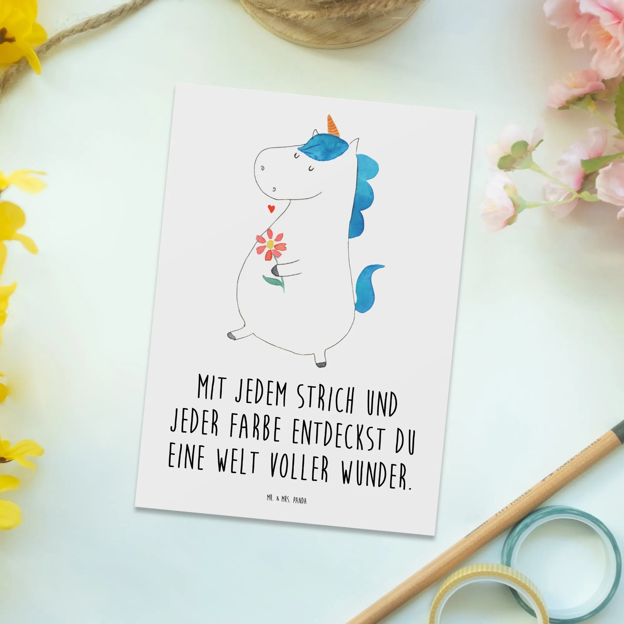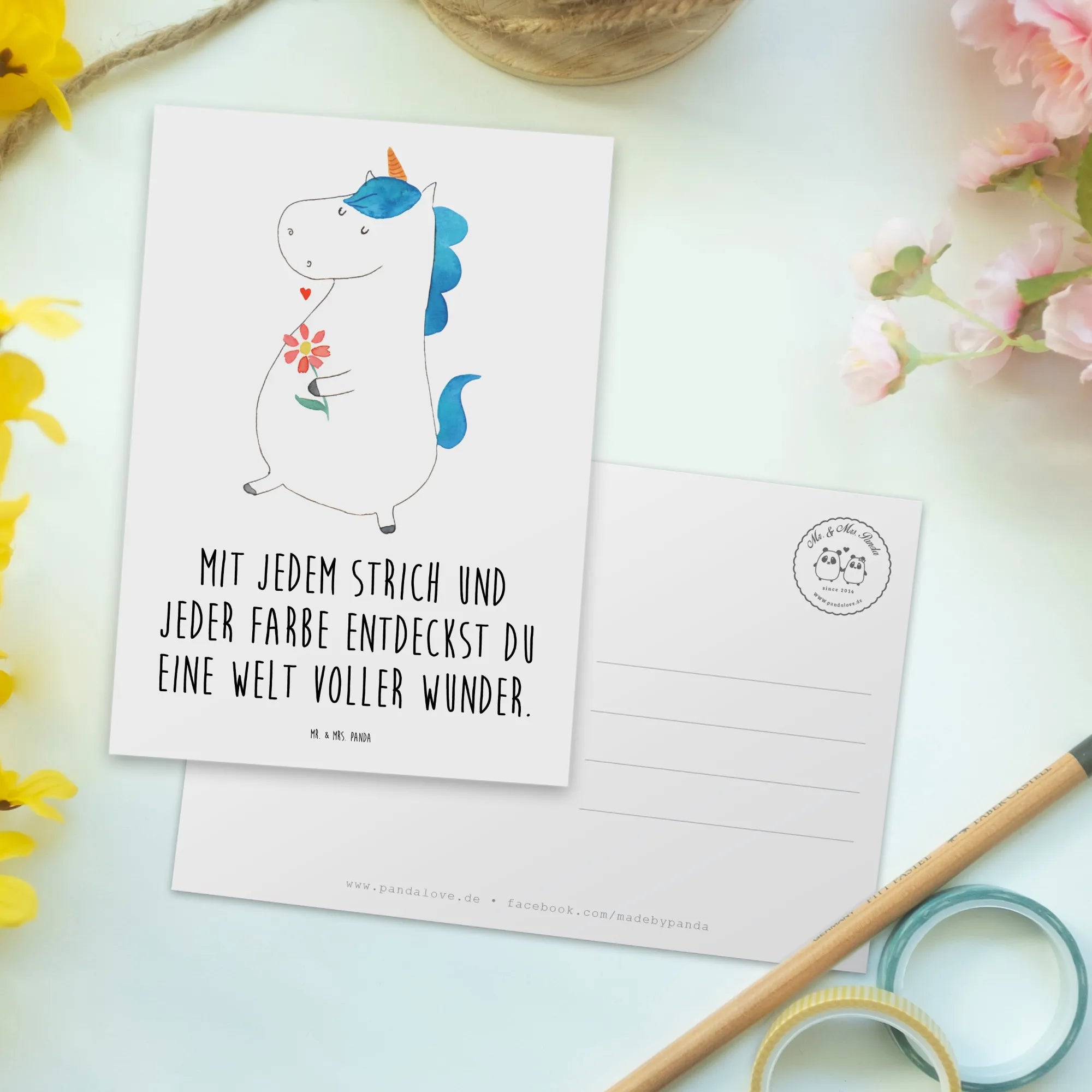 Die Postkarte „Die Freude an der Kreativität entdecken“ aus der Mutmacher-Kollektion von Mr. & Mrs. Panda ist ein liebevolles Zeichen der Zuversicht. Mit dem herzlichen Slogan „Mit jedem Strich und jeder Farbe entdeckst du eine Welt voller Wunder.“ schenkt diese Motivkarte Trost, Mut und inspirierende Zuversicht – genau das Richtige für alle, die einen kleinen Schub an Ermutigung gebrauchen können.