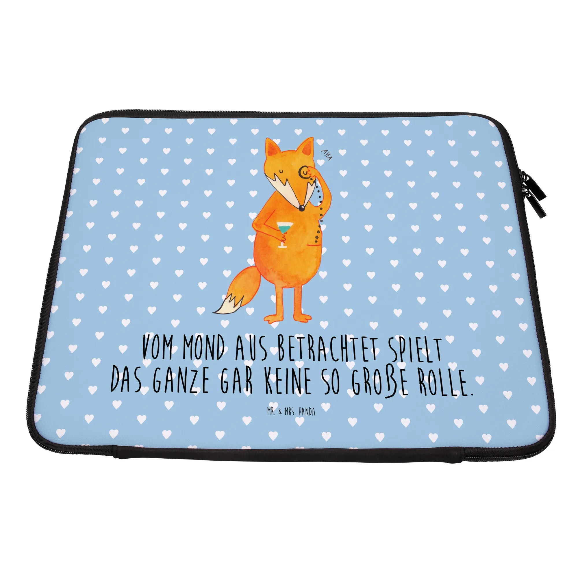 Willkommen in der Welt von Mr. & Mrs. Panda: Die Notebook Tasche „Fuchs Lord“ vereint praktischen Schutz und charmantes Design. Auf einem zarten pastellblauen Hintergrund thront unser stattlicher, aber zugleich niedlicher Fuchs mit Monokel – eine liebevoll gezeichnete Illustration von Mrs. Panda. Der eingebaute Spruch „Vom Mond aus betrachtet spielt das Ganze gar keine so große Rolle.“ bringt ein Lächeln in deinen Alltag und macht die Tasche zu einem besonderen Begleiter.