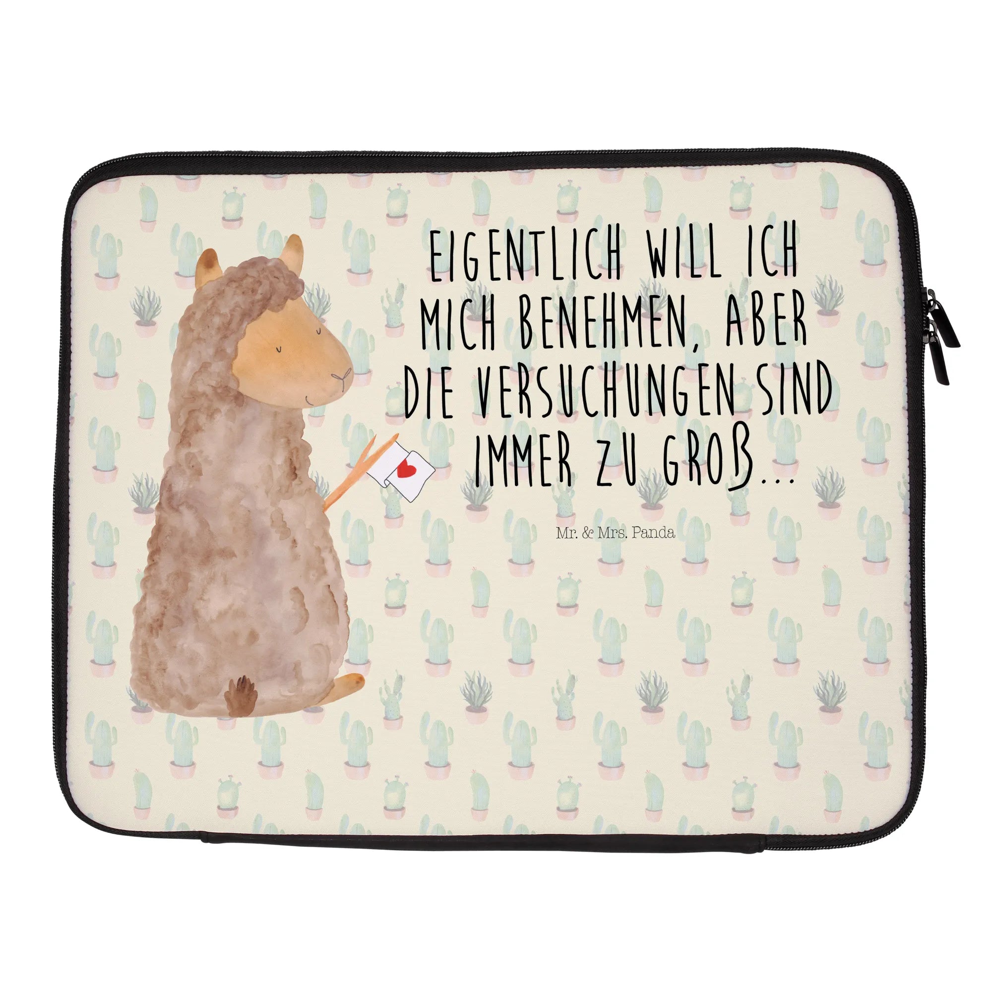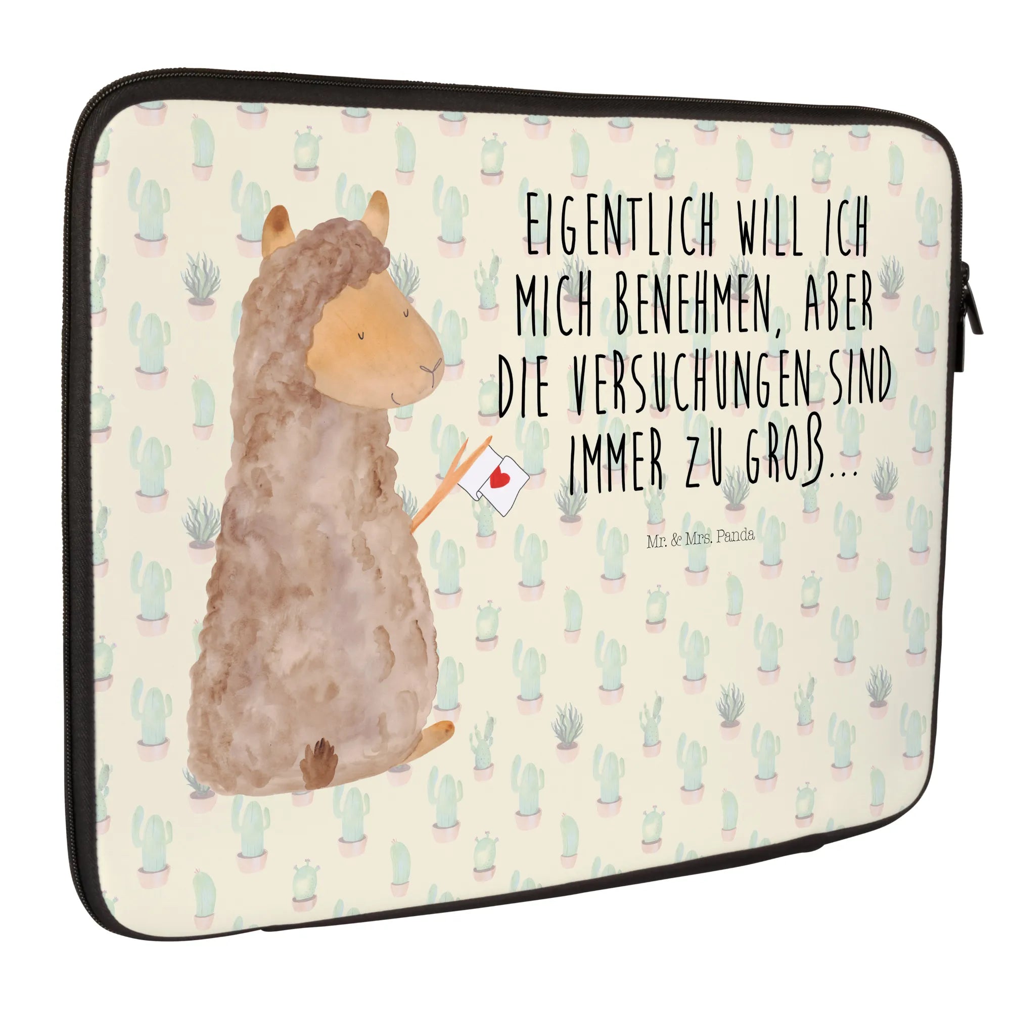 Das süße Alpaka-Design ist nicht nur ein Blickfang, sondern auch ein ganz persönliches Statement. Der eingearbeitete Spruch "Eigentlich will ich mich benehmen, aber die Versuchungen sind immer zu groß" bringt das besondere Flair von Mr. & Mrs. Panda in dein Leben. Wenn du auf der Suche nach einem originellen Geschenk für Freunde, Familie oder dich selbst bist, dann solltest du diese tolle Notebook Tasche unbedingt in Betracht ziehen.