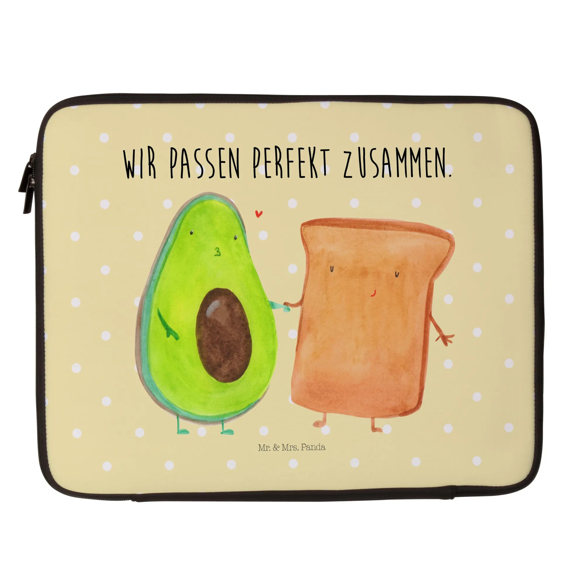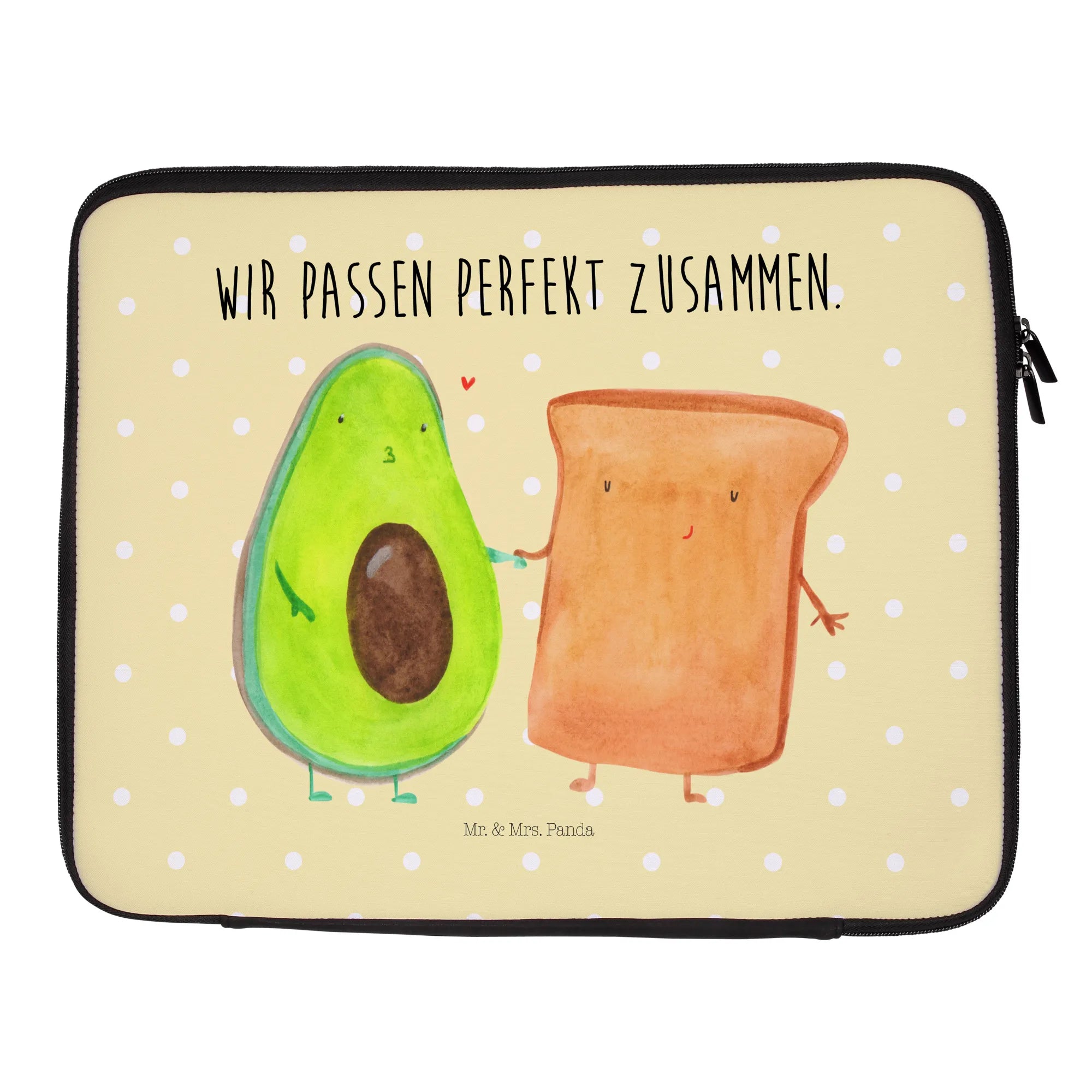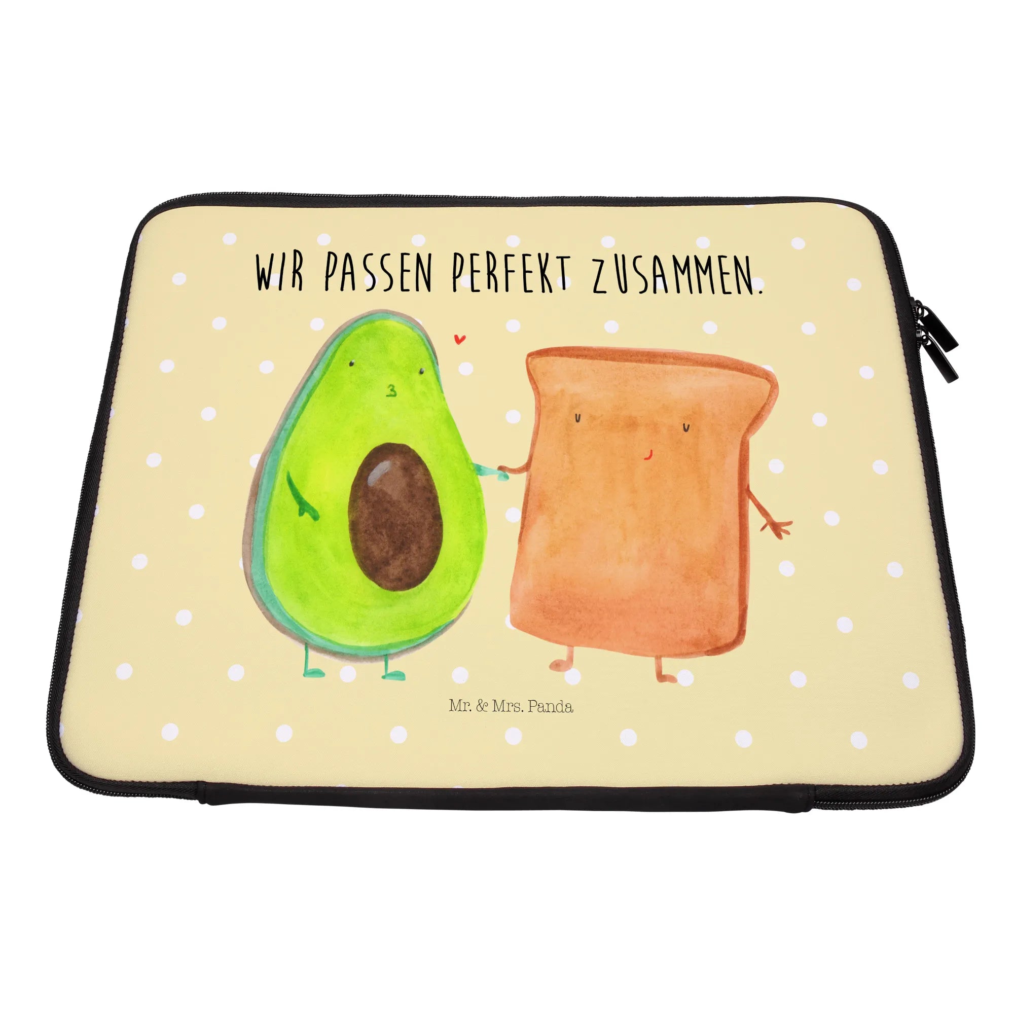 Entdecke die wunderschöne Notebook Tasche von Mr. & Mrs. Panda mit dem süßen Motiv von Avocado und Toast! Diese Tasche ist nicht nur ein wahrer Hingucker, sondern auch ein praktisches Accessoire für jeden Anlass.