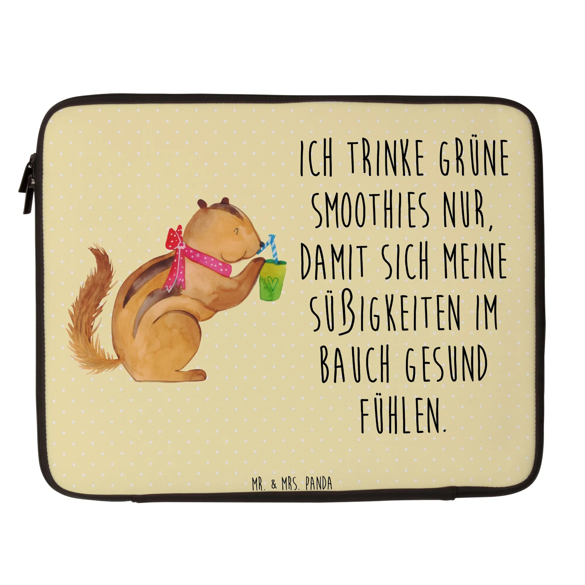 Entdecke die bezaubernde Notebook Tasche mit dem süßen Eichhörnchen Smoothie-Motiv aus der Small World Kollektion von Mr. & Mrs. Panda! Diese leichte und wunderschöne Notebook Tasche ist nicht nur stilvoll, sondern sorgt auch dafür, dass dein Laptop immer bestens geschützt ist.