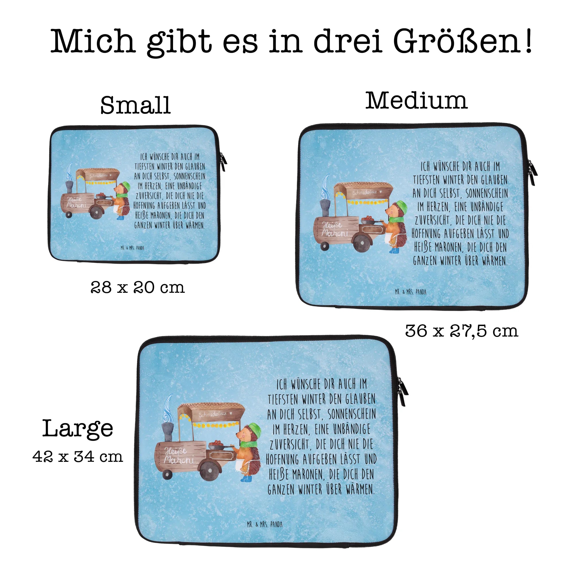 Die süße Notebook Tasche Igel Maronen von Mr. & Mrs. Panda ist das perfekte Geschenk für die kalte Jahreszeit! Mit ihrem charmanten Wintermotiv bringt sie sofort eine Portion Gemütlichkeit in deinen Alltag. Stell dir vor, wie der niedliche Igel in seinem blauen Stiefel und dem grünem Schal vor einem Stand mit heißen Maronen steht. Die liebevolle Gestaltung wird Herzen höher schlagen lassen und ist damit ideal für Freunde und Familie, die die winterliche Atmosphäre lieben und gleichzeitig auf der Suche nach einem praktischen Begleiter für ihr Notebook sind.