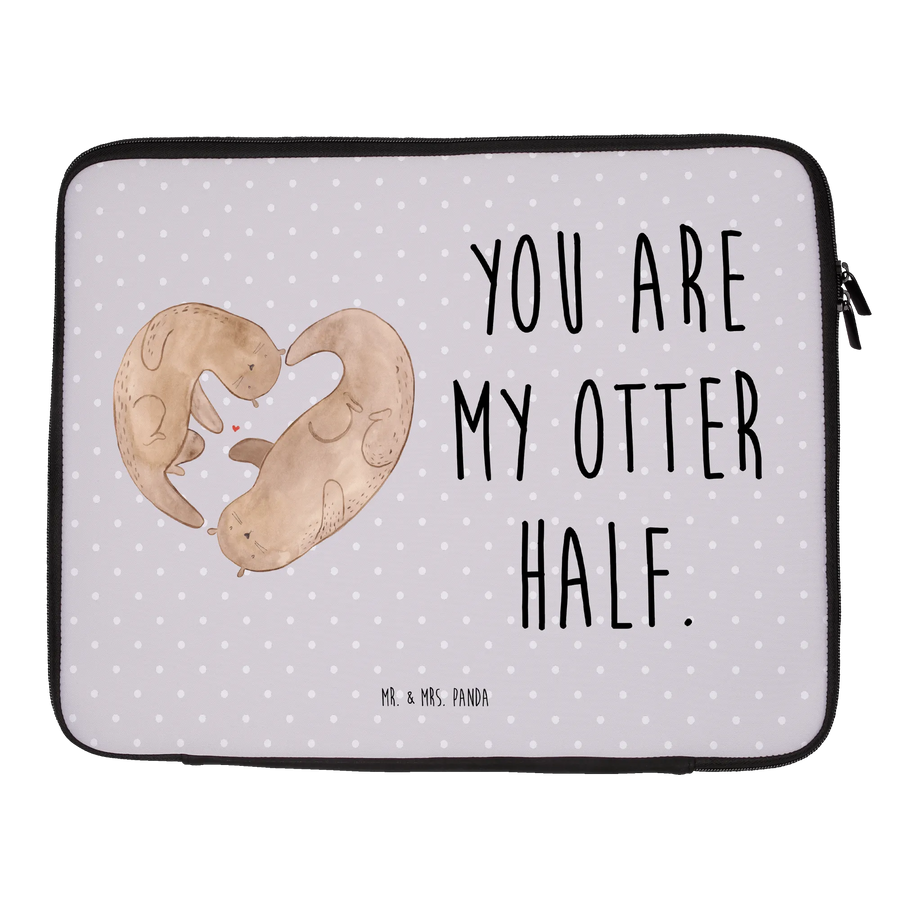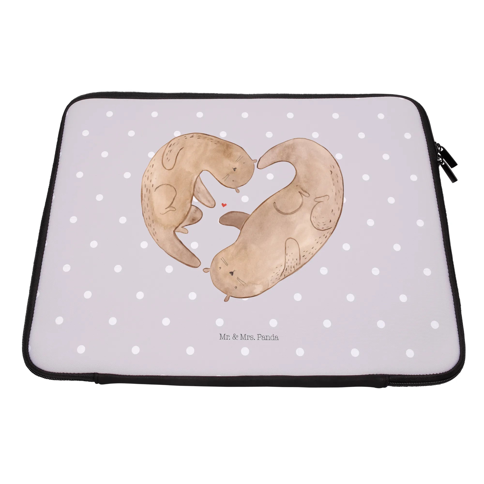 Entdecke die zauberhafte Notebook Tasche mit dem liebevollen Motiv Otter Herz aus der Otter - Kollektion von Mr. & Mrs. Panda! 🌊 Diese bezaubernde Tasche ist nicht nur ein stilvolles Accessoire, sondern auch der ideale Schutz für dein Laptop oder Notebook.