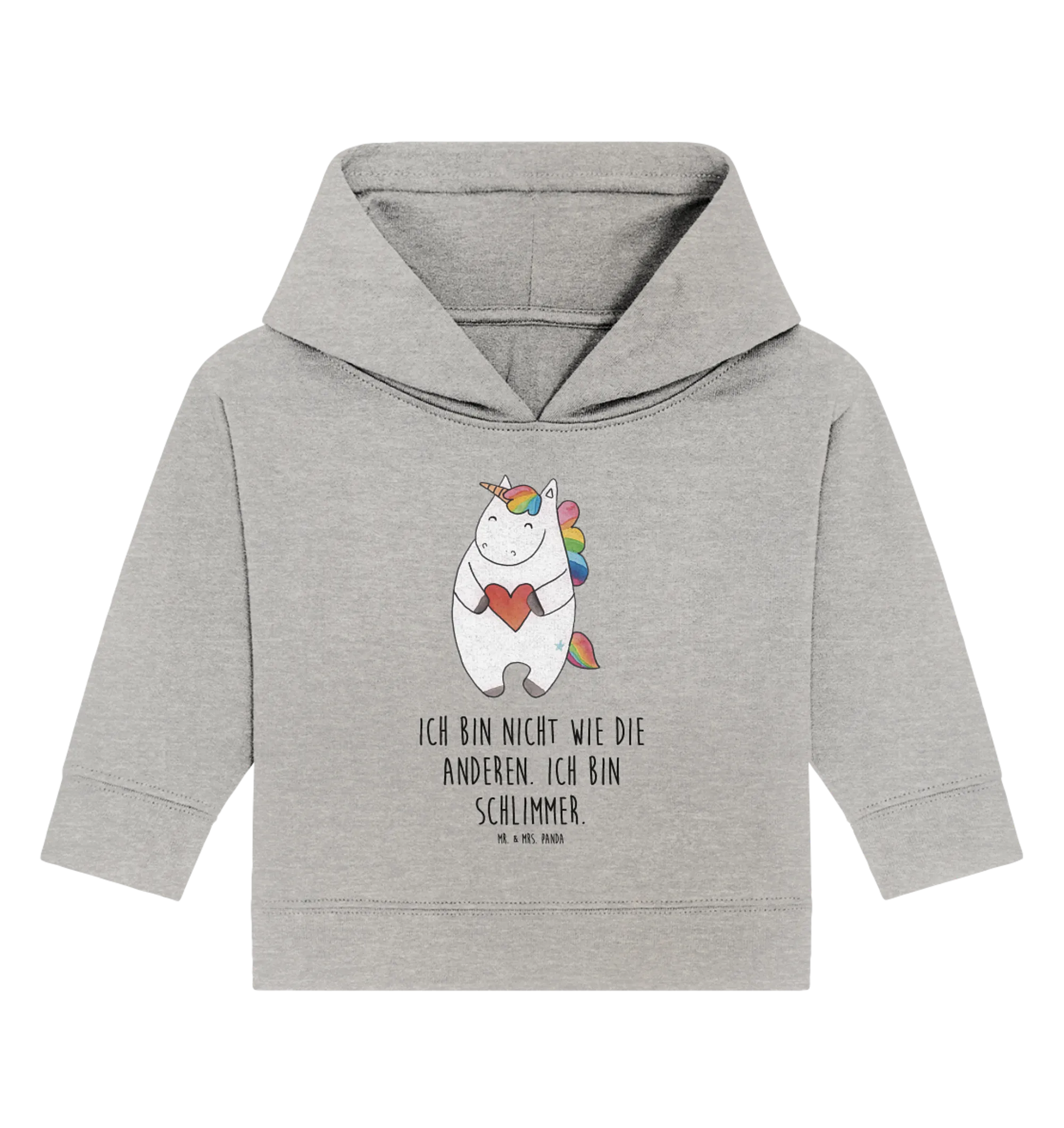Ein Baby Kapuzenshirt von Mr. & Mrs. Panda ist nicht nur ein Kleidungsstück, es ist ein kleines Stück Magie! Das organische Baby Hoodie mit dem süßen Einhorn Herz Design ist perfekt für all die kleinen Abenteurer und Entdecker, die die Welt auf ihre eigene, lustige Art erobern wollen.