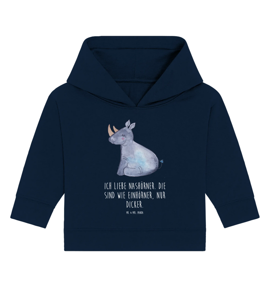 Organic Baby Hoodie Einhorn Nashorn - 12. - 18. Monat - mit Spruch - French Navy