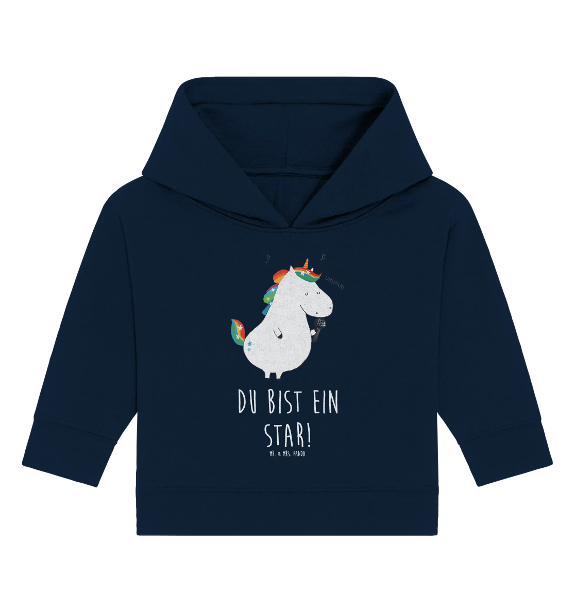 Das Organic Baby Hoodie mit dem bezaubernden Einhorn Sänger Motiv aus der Einhorn-Kollektion von Mr. & Mrs. Panda ist das perfekte Geschenk für kleine Stars! Dieses Hoodie ist nicht nur super stylisch, sondern auch aus 100% ökologischer Baumwolle gefertigt. Ein ideales Kleidungsstück für Babies im Alter von 12 bis 18 Monaten, die es lieben, modisch und bequem eingekleidet zu sein. Das niedliche Design zeigt ein fröhliches Einhorn, das in ein Mikrofon singt und mit dem Spruch 'Du bist ein Star!' ergänzt wird. Damit zaubert es jedem kleinen Superstar ein Lächeln ins Gesicht.