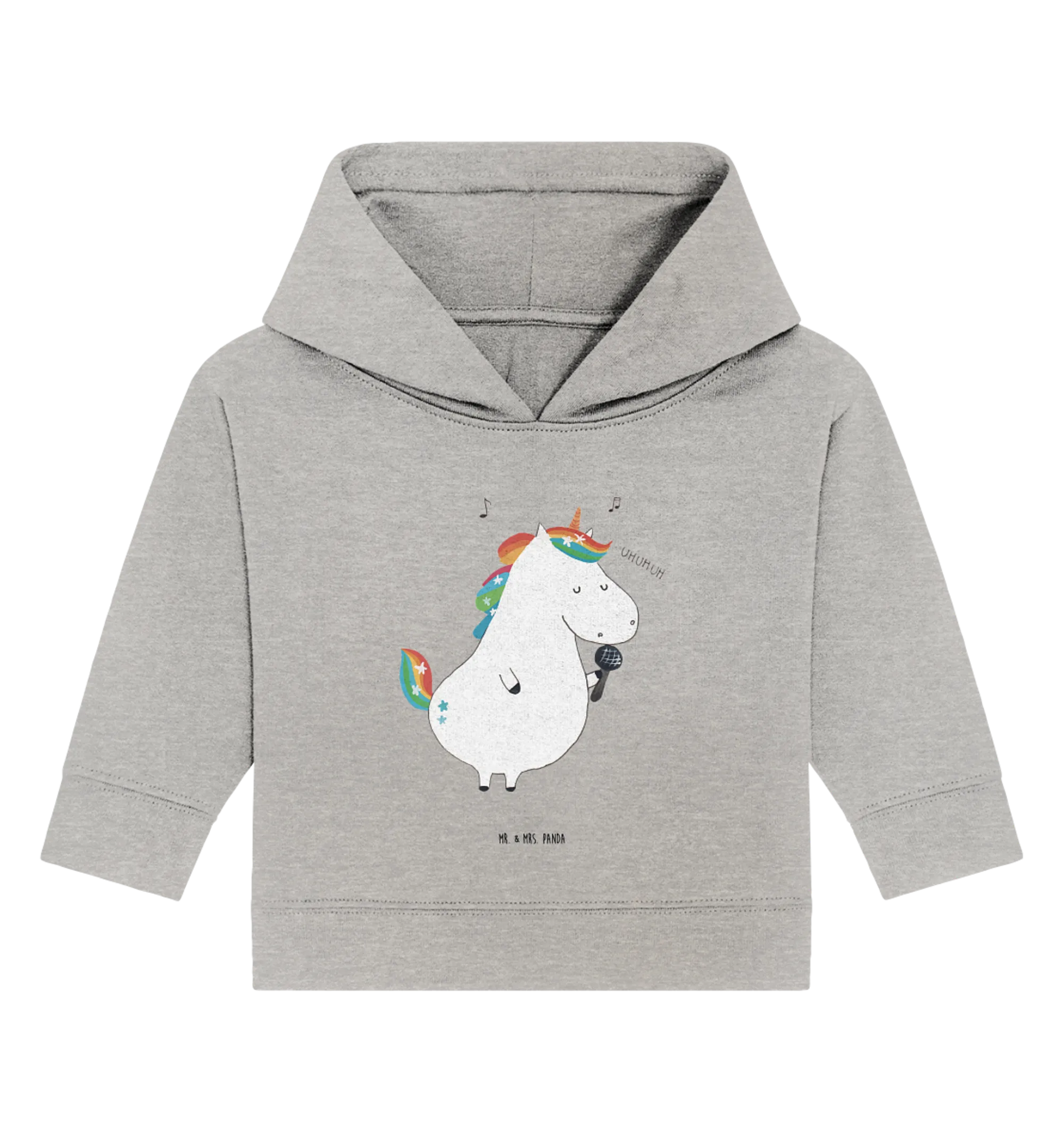 Das Organic Baby Hoodie "Einhorn Sänger" aus der zauberhaften Einhorn-Kollektion von Mr. & Mrs. Panda ist der perfekte Begleiter für kleine Musikfans. Mit einem niedlichen, handgezeichneten Einhorn, das begeistert in ein Mikrofon singt, bringt dieses Hoodie Freude und Glanz in jedes Kinderzimmer. Die sanfte Heather Grey-Farbe sorgt dafür, dass es sich wunderbar kombinieren lässt.