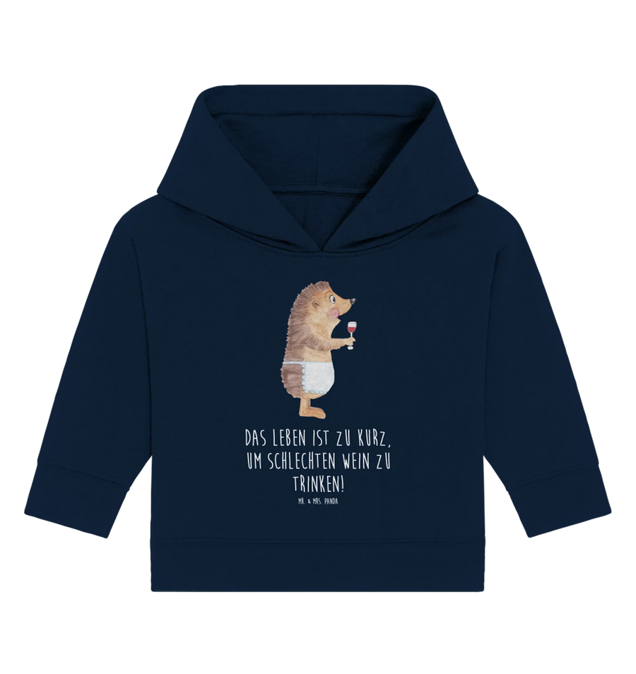 Das Organic Baby Hoodie mit dem niedlichen Motiv "Igel mit Wein" aus der Small World Kollektion von Mr. & Mrs. Panda ist das perfekte Geschenk für Eltern und ihre Kleinen, die eine Vorliebe für das Besondere haben. Mit diesem Kapuzenshirt bringst Du nicht nur Farbe und Freude in den Alltag, sondern auch die wunderbare Botschaft, dass das Leben kurz ist und man es in vollen Zügen genießen sollte – ganz im Stil des Spruches "Das Leben ist zu kurz, um schlechten Wein zu trinken!" Dieses zauberhafte Motiv zeigt einen kleinen, knuffigen Igel, der aus einem Rotweinglas trinkt – einfach herzallerliebst!