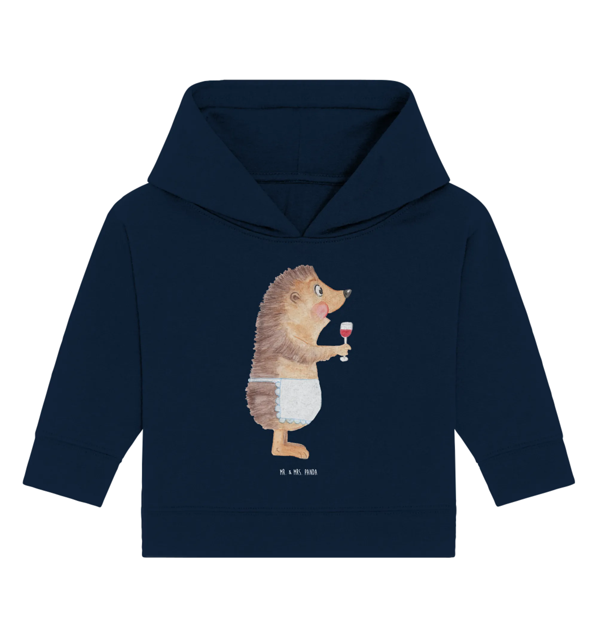 Das Organic Baby Hoodie "Igel mit Wein" aus der liebevollen Small World Kollektion von Mr. & Mrs. Panda ist das perfekte Geschenk für die kleinen Weinliebhaber in der Familie.