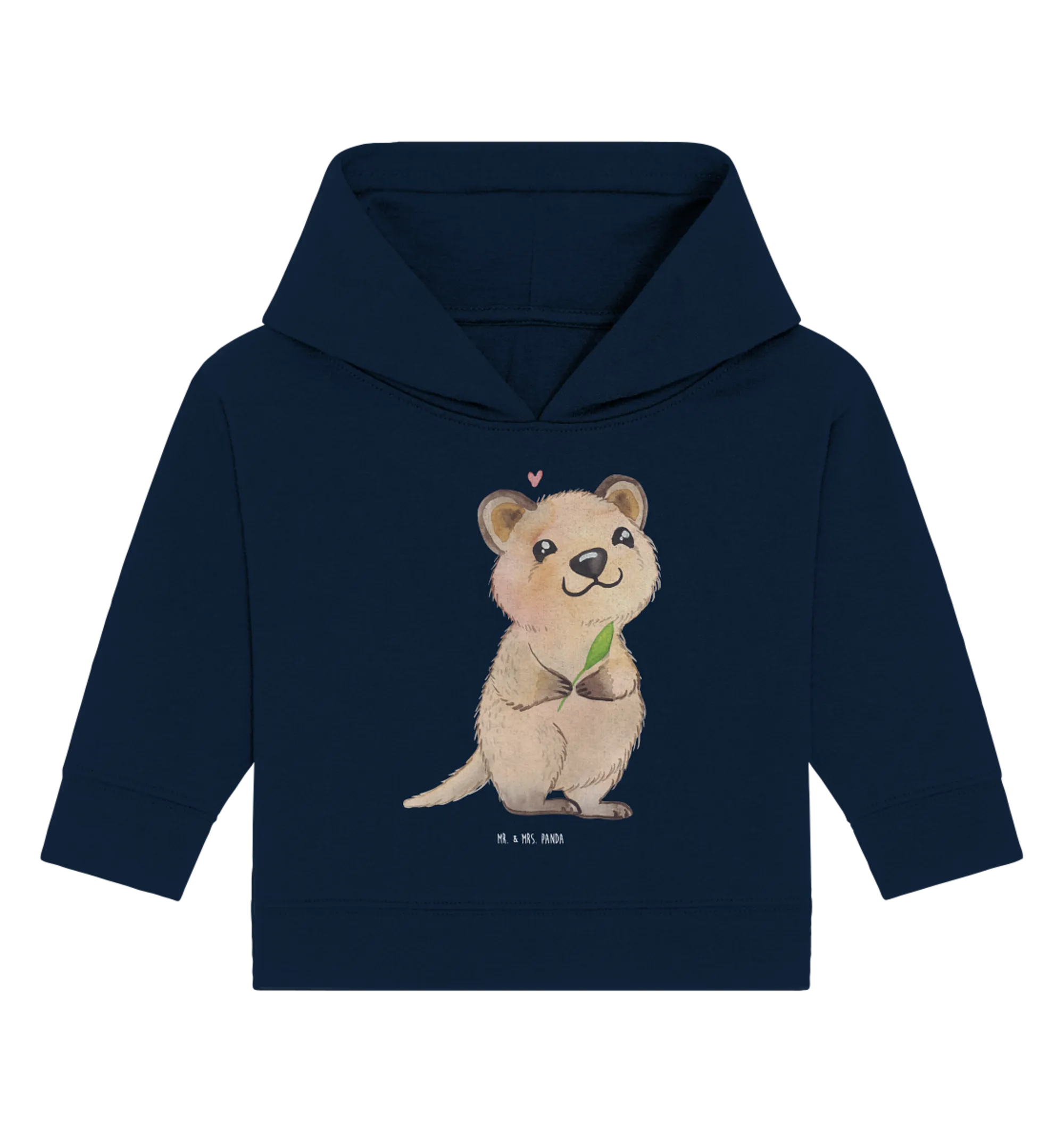 Das Organic Baby Hoodie "Quokka Happy" aus der bezaubernden Small World Kollektion von Mr. & Mrs. Panda ist der perfekte Begleiter für kleine Weltenbummler!