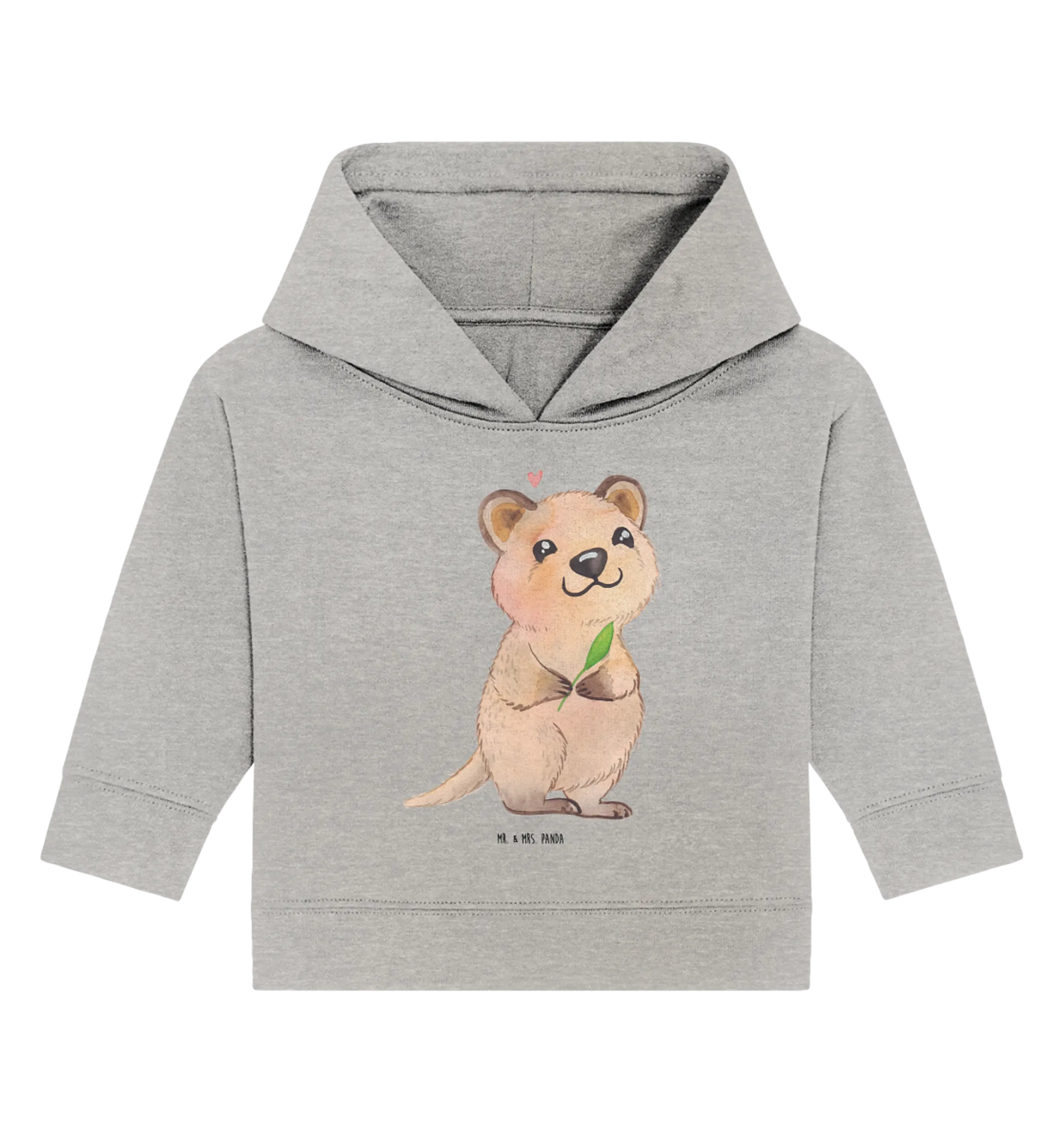 Das Organic Baby Hoodie 'Quokka Happy' aus der kleinen Welt von Mr. & Mrs. Panda ist das perfekte Geschenk für kleine Entdecker und kuschelige Abenteuer. Auf diesem niedlichen Kapuzenshirt strahlt ein glückliches Quokka mit einem charmanten Lächeln und einem grünen Blatt in den Händen. Dieses süße Tiermotiv bringt nicht nur Freude ins Kinderzimmer, sondern zaubert auch jedem großen und kleinen Herzen ein Lächeln ins Gesicht. Die sanften Farben und das liebevoll gestaltete Design sind nicht nur ein Blickfang, sondern sorgen auch für gute Laune beim Tragen.