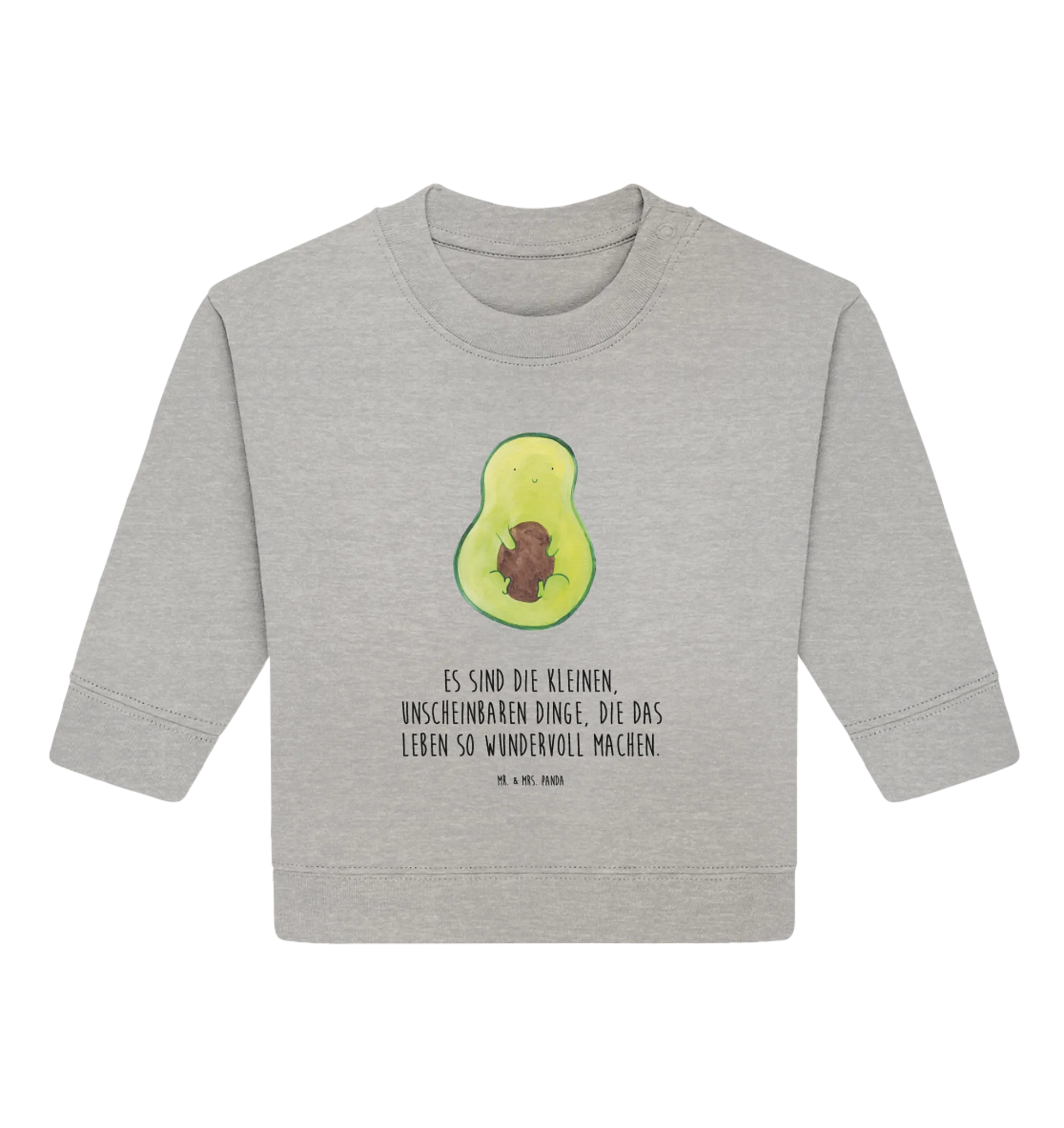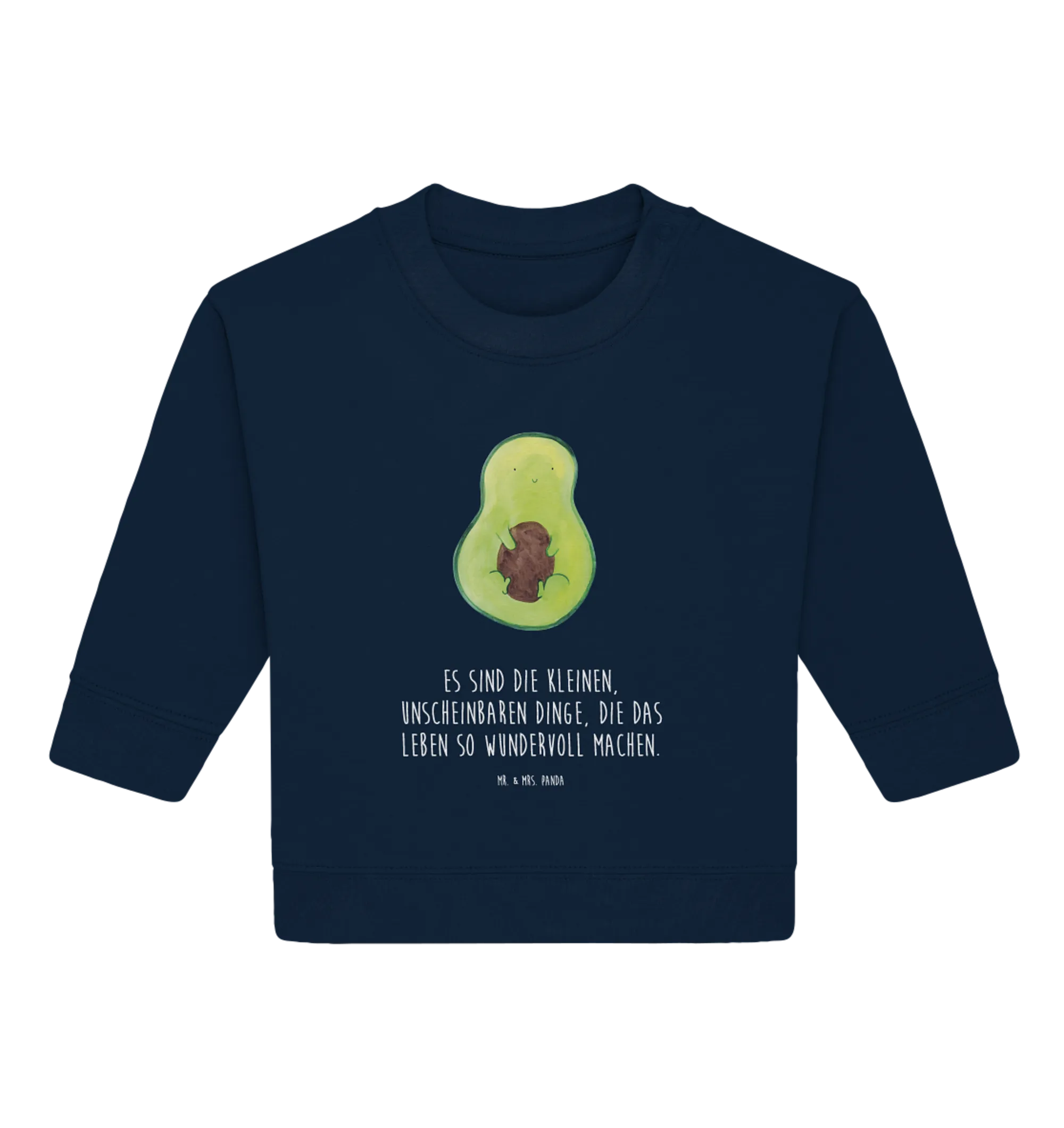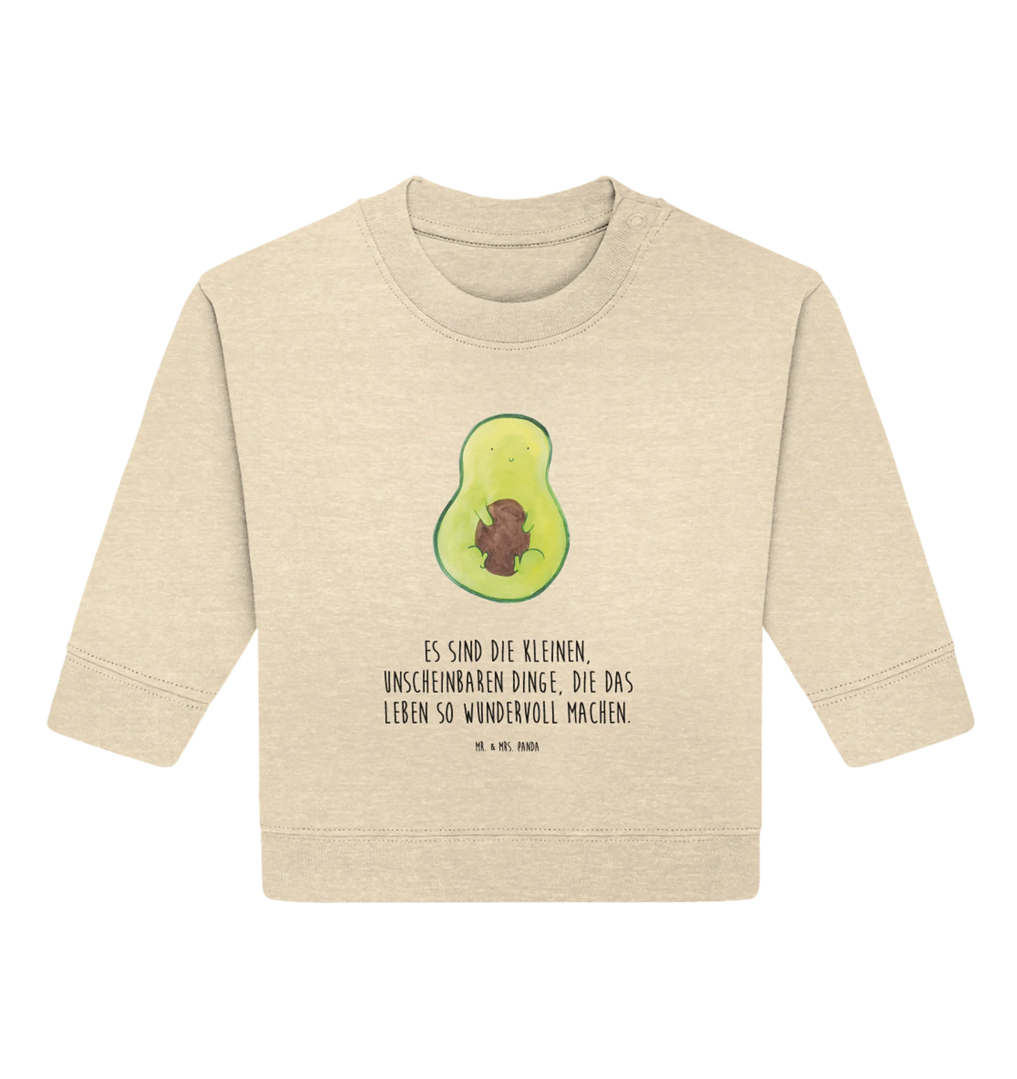 Der Organic Baby Pullover "Avocado mit Kern" aus der Kollektion Avocado von Mr. & Mrs. Panda ist das perfekte Geschenk für alle Eltern und Beschenker, die Wert auf Nachhaltigkeit und Stil legen!