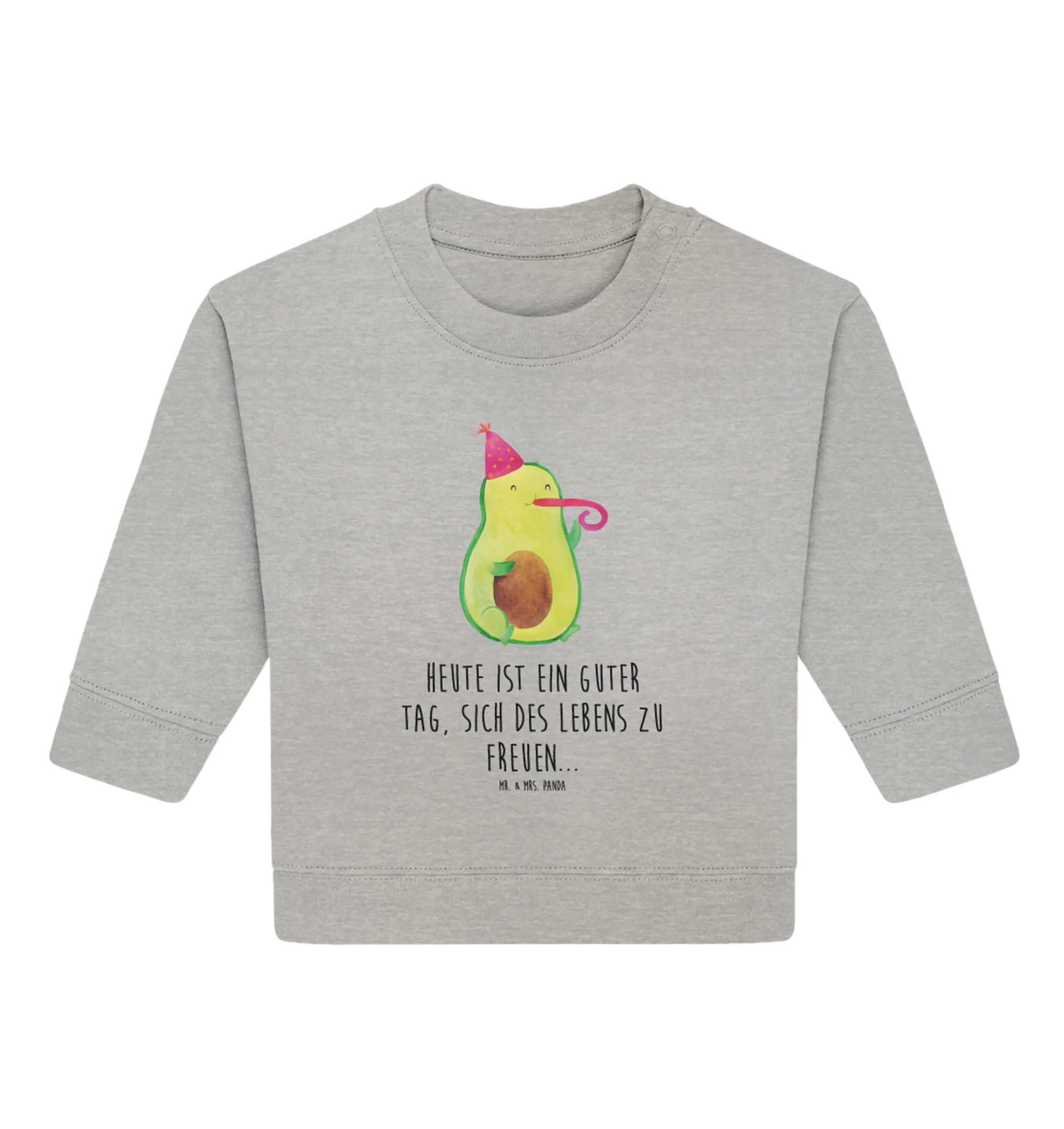 Der Organic Baby Pullover "Avocado Partyhupe" aus der speziellen Avocado Kollektion ist das perfekte Geschenk für kleine Gesundesser und Party-Heroes!