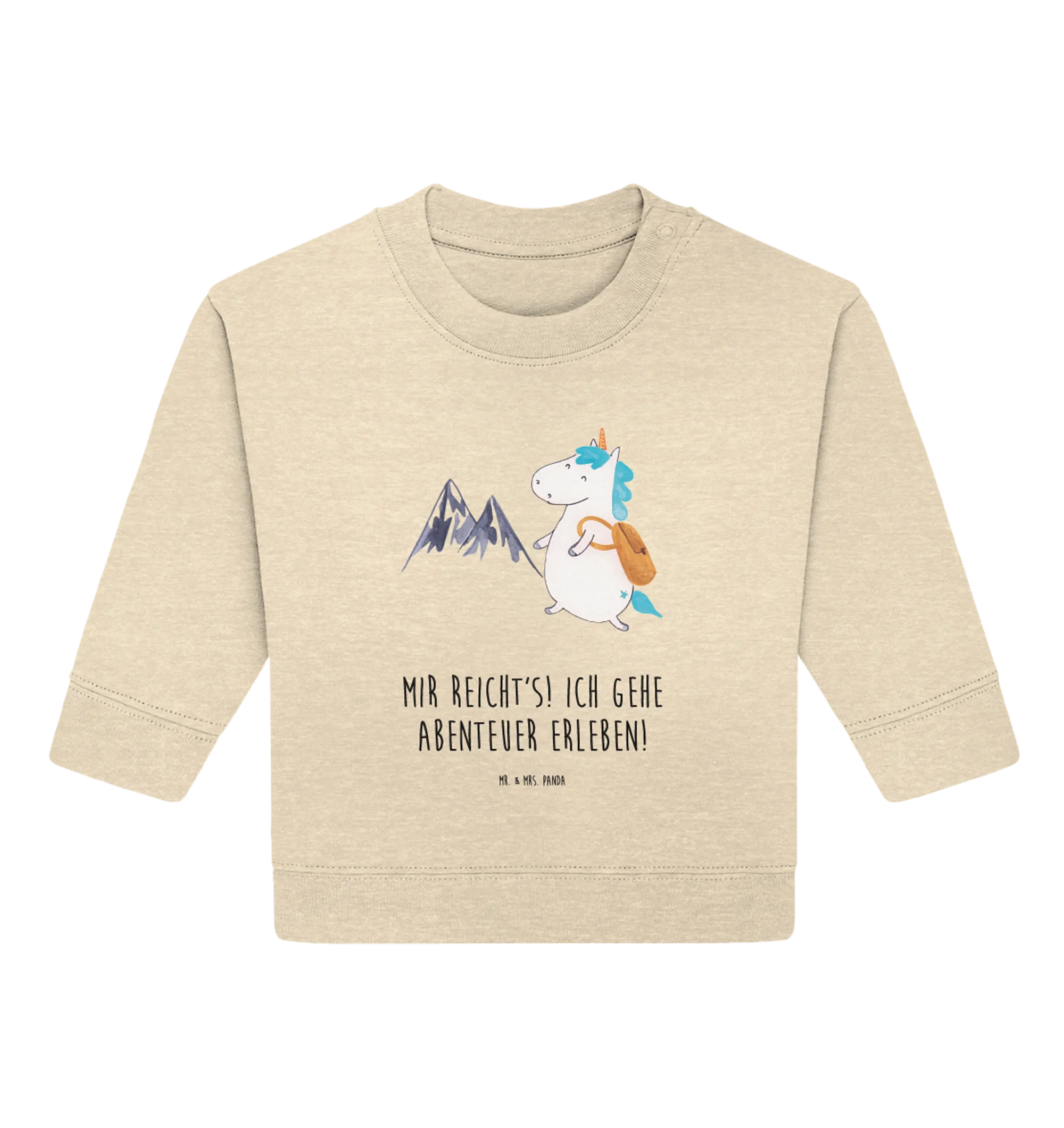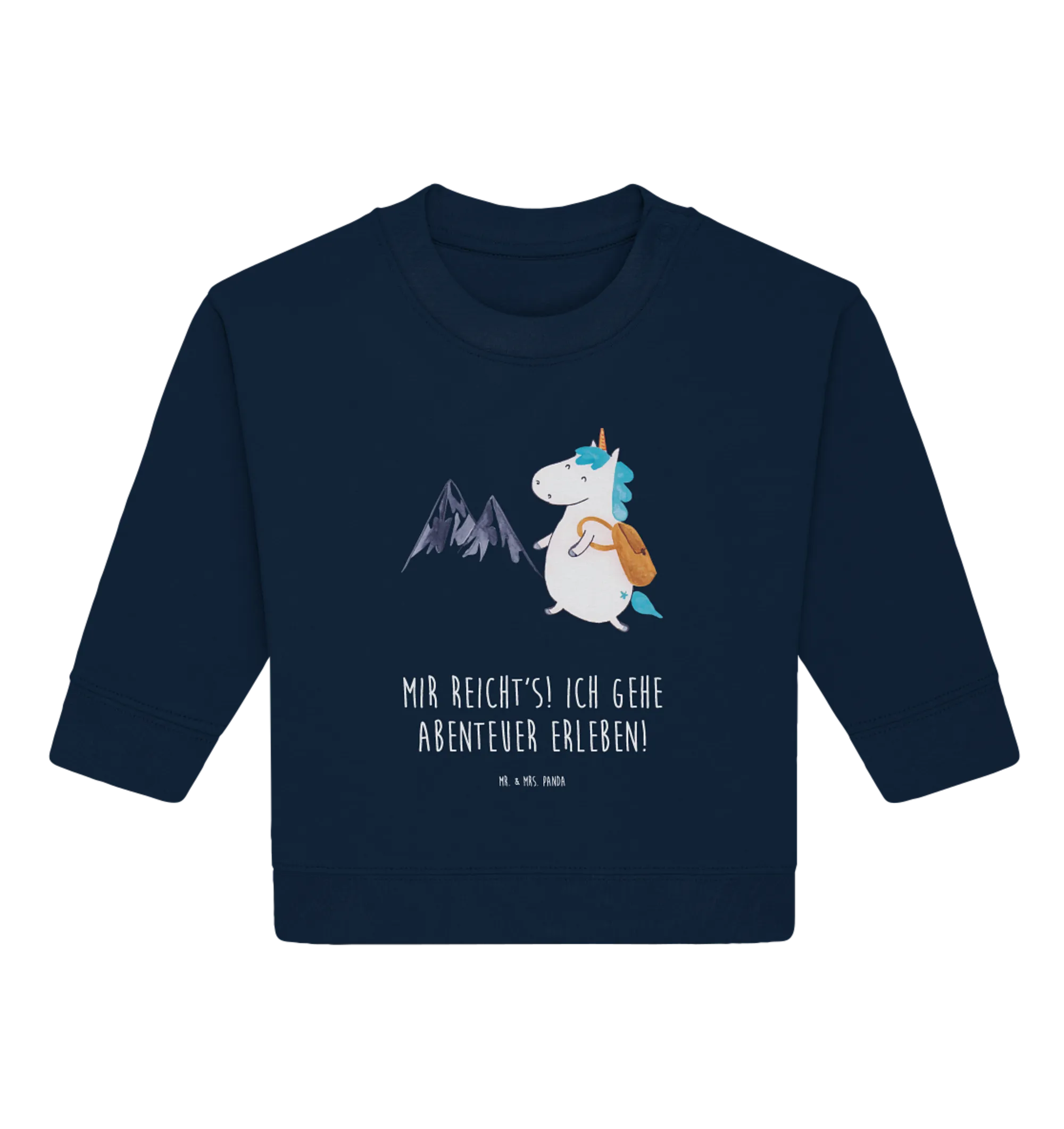 Organic Baby Pullover Einhorn Bergsteiger Baby Bullover, Baby Sweatshirt, Einhorn Deko, Einhörner, Einhorn, Unicorn, Reisen, Abenteurer, Urlaub, Berge, Bergsteiger, Abenteuer, Weltenbummler, Entdecker, Weltreise