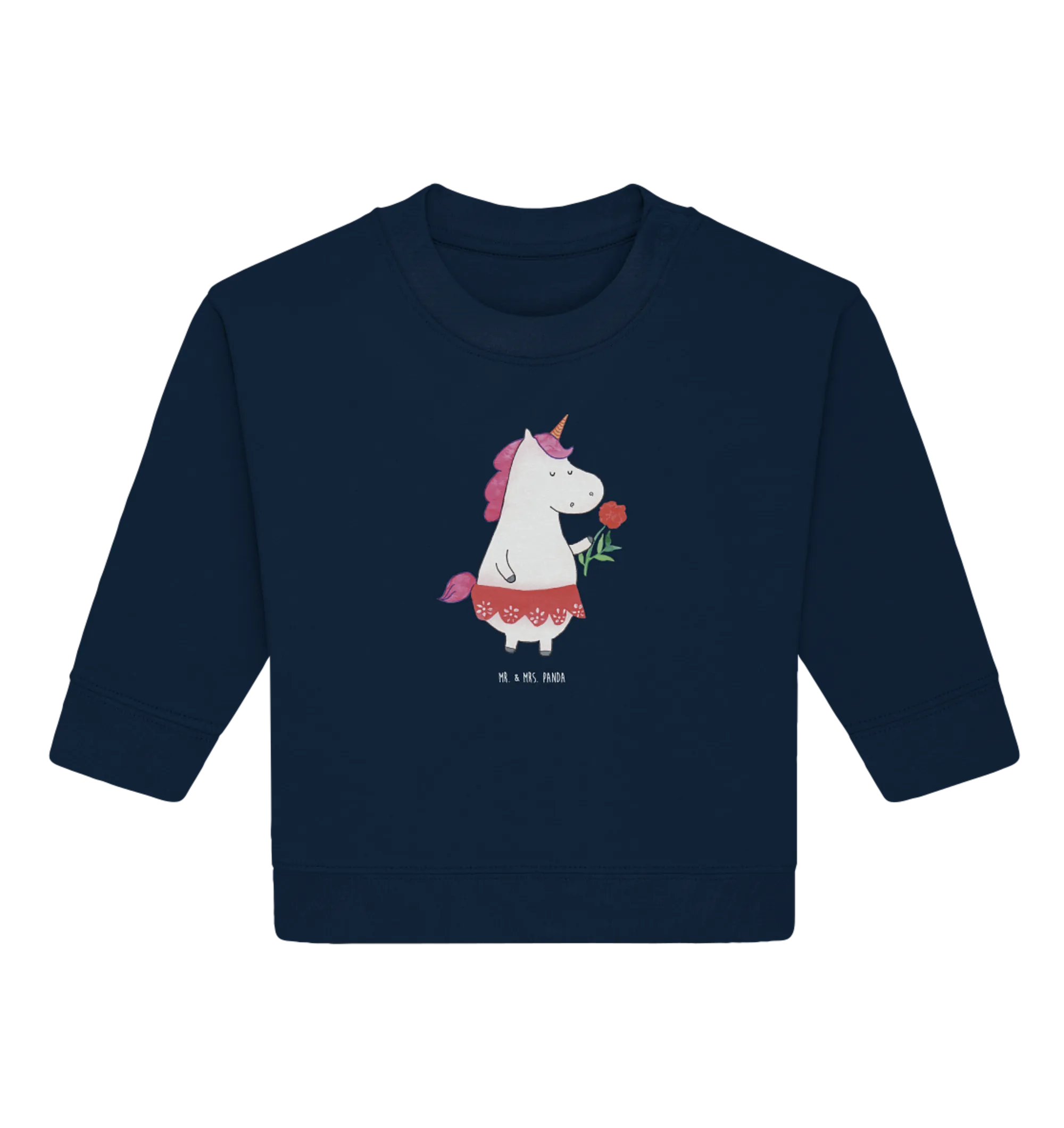 Du suchst das perfekte Geschenk für ein kleines Einhorn-Fan? Der Organic Baby Pullover "Einhorn Dame" aus der zauberhaften Einhorn-Kollektion von Mr. & Mrs. Panda ist genau das Richtige!