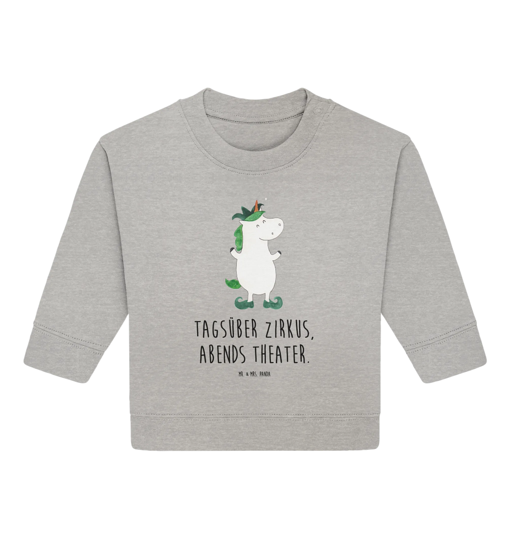 Der Organic Baby Pullover mit dem zauberhaften Einhorn Joker aus der besonderen Einhorn-Kollektion von Mr. & Mrs. Panda ist das perfekte Geschenk für kleine Einhorn-Liebhaber! 🦄 Dieser Pullover aus hochwertiger, ökologischer Baumwolle ist nicht nur unwiderstehlich süß, sondern auch super bequem und kinderfreundlich.