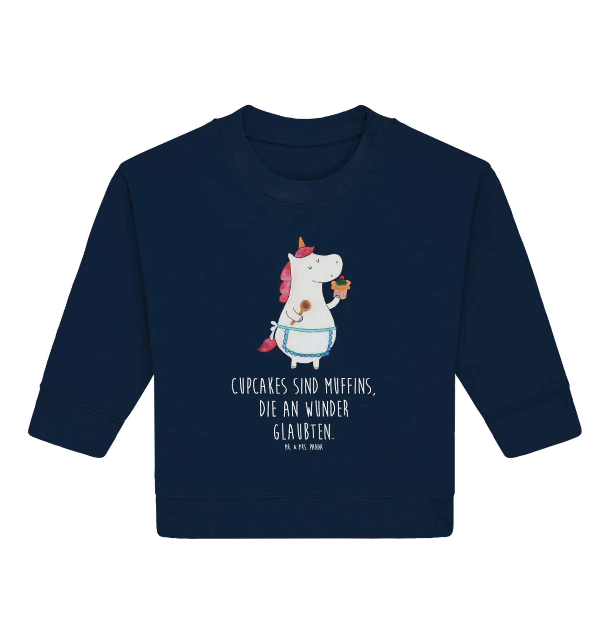 Der Organic Baby Pullover mit dem zauberhaften Motiv 'Einhorn Küchenfee' aus der Einhorn-Kollektion von Mr. & Mrs. Panda ist das perfekte Geschenk für kleine Träumer und zukünftige Bäckerinnen. 🦄🍰