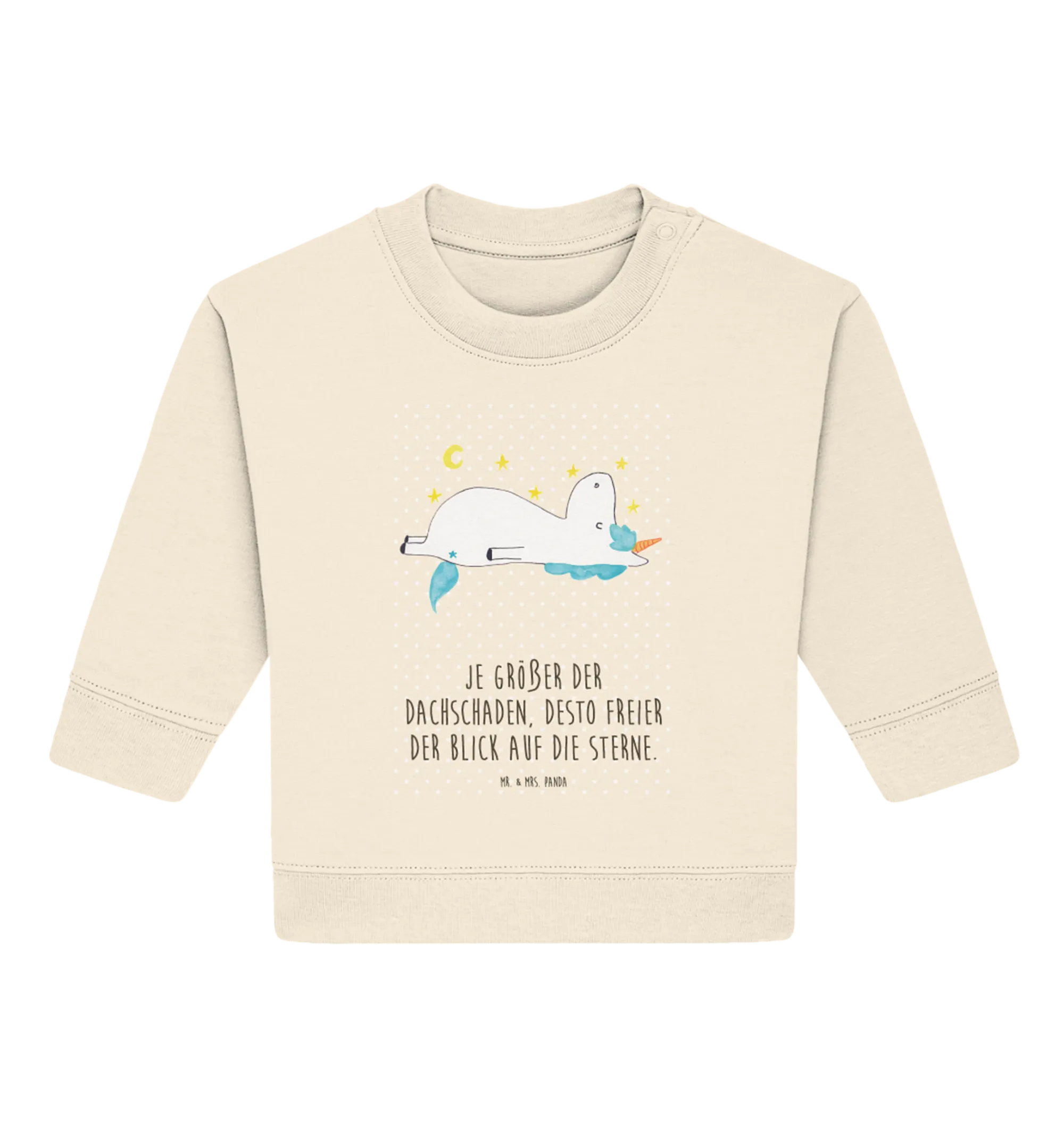 Entdecke den perfekten Begleiter für die Kleinsten mit unserem zauberhaften Organic Baby Pullover im Design "Einhorn Sternenhimmel" aus der Einhorn - Kollektion von Mr. & Mrs. Panda! Dieses liebevoll gestaltete Sweatshirt ist nicht nur ein echter Hingucker, sondern bietet auch höchsten Tragekomfort für Dein Baby. Hergestellt aus 100% Öko Baumwolle, sorgt es für ein angenehmes Gefühl auf der zarten Babyhaut und ist gleichzeitig umweltfreundlich.
