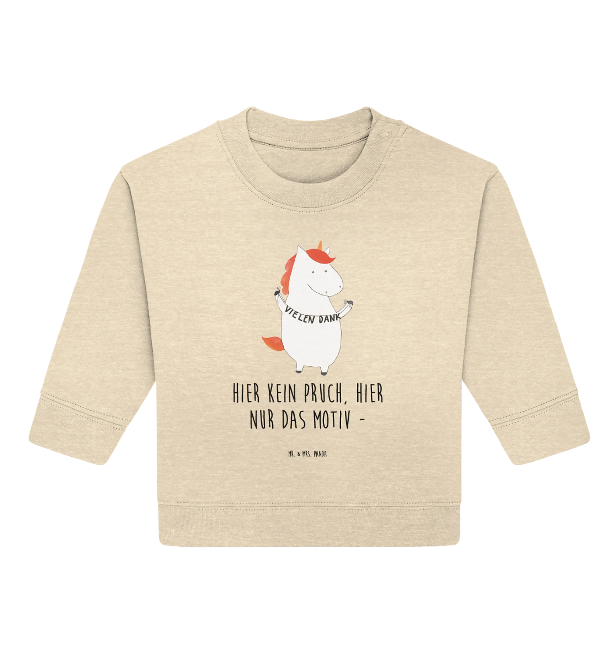Der Organic Baby Pullover "Einhorn Vielen Dank" ist nicht nur ein Kleidungsstück, sondern auch ein wunderschönes Kunstwerk. Er eignet sich hervorragend als Geschenk zur Geburt oder Taufe und wird nicht nur dem Kind Freude bereiten, sondern auch den Eltern. Über lass deinem kleinen Engel in diesem tollen Pullover strahlen und ihn mit einem zauberhaften Gefühl von Dankbarkeit umhüllen. Ein wunderbares Gefühl, das man mit diesem Pullover ausdrücken kann. Verschenke Freude, Liebe und Dankbarkeit – mit dem Einhorn Pullover von Mr. & Mrs. Panda!
