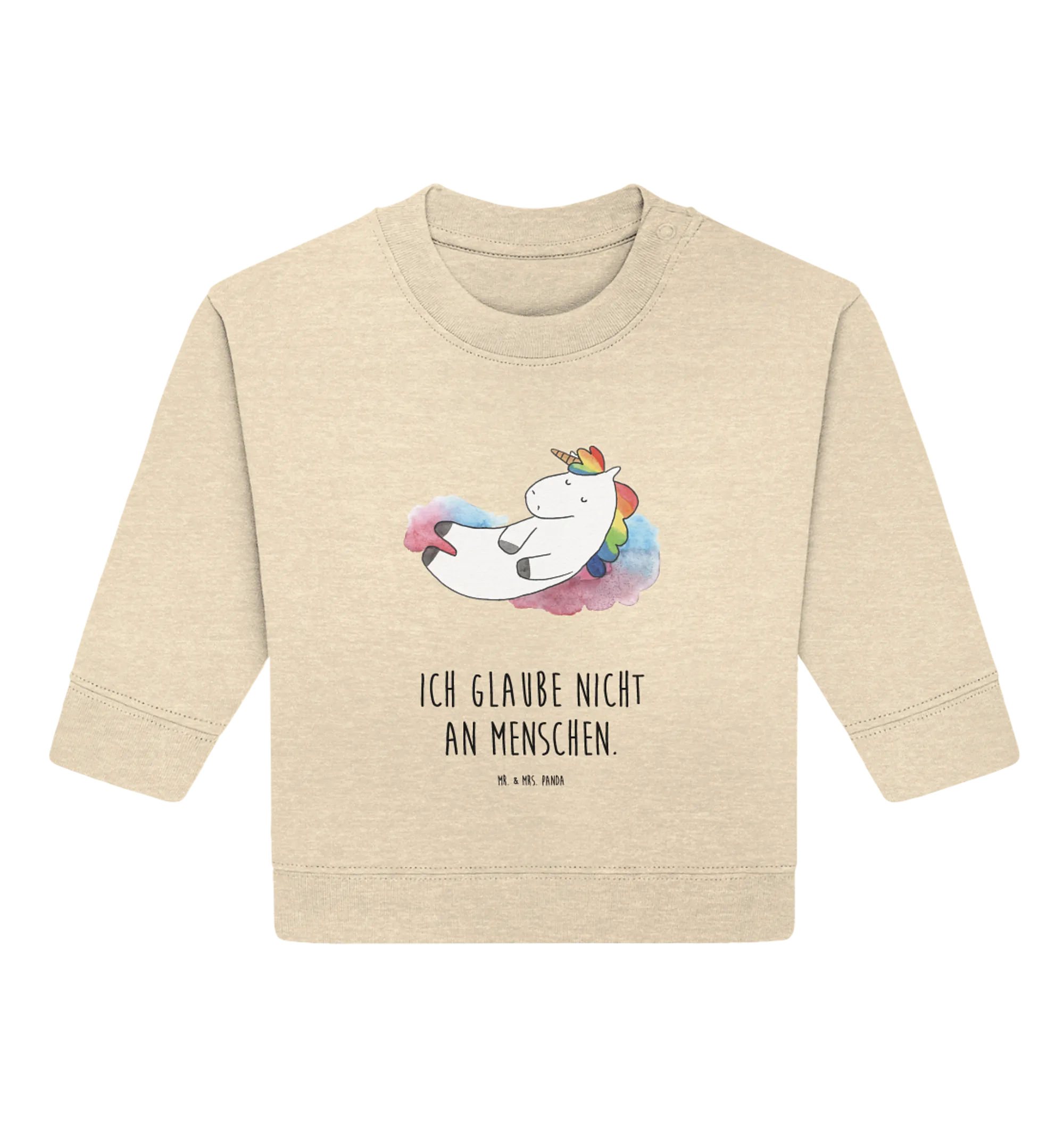 Entdecke den magischen Organic Baby Pullover mit dem zauberhaften Motiv "Einhorn Wolke 7" von der einzigartigen Einhorn-Kollektion von Mr. & Mrs. Panda! Dieser Pullover ist nicht nur stylisch und süß, sondern sorgt auch für ein Lächeln auf jedem Gesicht. Das entspannte Einhorn, das auf seiner Wolke sitzt, ist sicher: Menschen gibt es gar nicht! Vielleicht ist das der Grund, warum es so entspannt ist. Du möchtest deinem kleinen Liebling etwas ganz Besonderes schenken? Dann ist dieser Pullover das perfekte Geschenk!