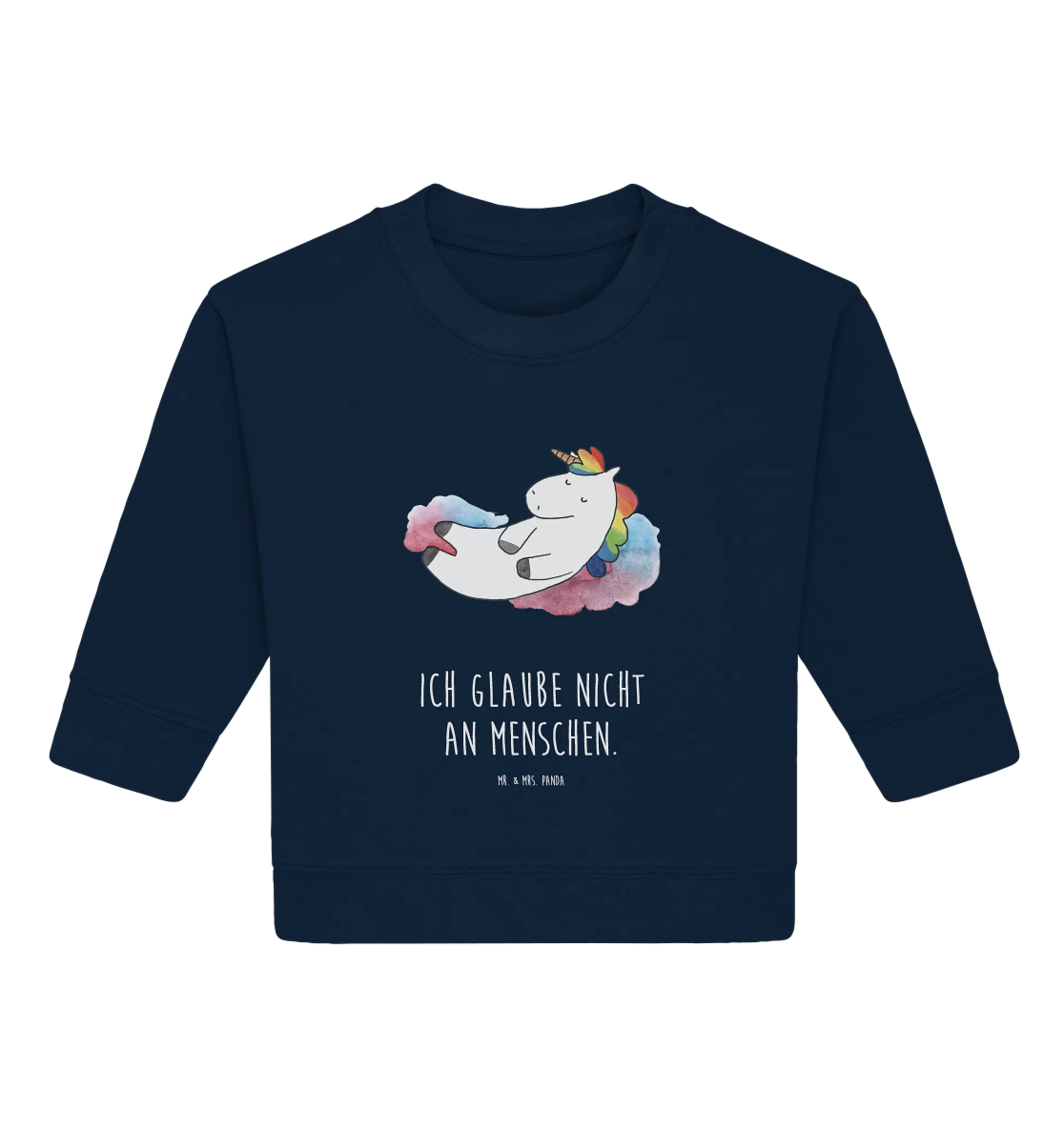 Suchst du das perfekte Geschenk für einen kleinen Einhorn-Fan? Dann ist der Organic Baby Pullover "Einhorn Wolke 7" aus unserer zauberhaften Einhorn-Kollektion genau das richtige für dich! Dieses liebevolle Design zeigt ein entspanntes Einhorn, das glücklich auf einer fluffigen Wolke sitzt. Und ganz ehrlich, wer könnte bei diesem Anblick nicht lächeln? Der Spruch „Ich glaube nicht an Menschen.“ bringt eine humorvolle Note ins Spiel und sorgt garantiert für Schmunzeln bei den Eltern und dem Baby!