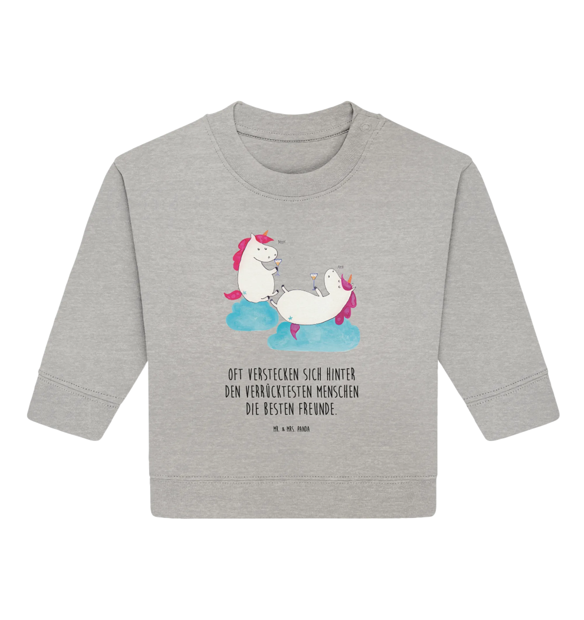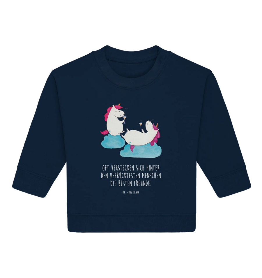 Hergestellt aus 100% Öko-Baumwolle, ist dieser Baby Pullover nicht nur kuschelig weich, sondern auch noch umweltfreundlich! Bei Mr. & Mrs. Panda legen wir viel Wert auf Nachhaltigkeit und hochwertige Materialien. Die Baumwolle ist besonders hautfreundlich und ideal für die zarte Babyhaut. Mit einem niedlichen Einhorn, das zusammen mit einem anderen zauberhaften Wesen ein Glas Sekt anstößt, wird jede kleine Prinzessin zum absoluten Star auf jeder Kinderparty oder beim Familienausflug.