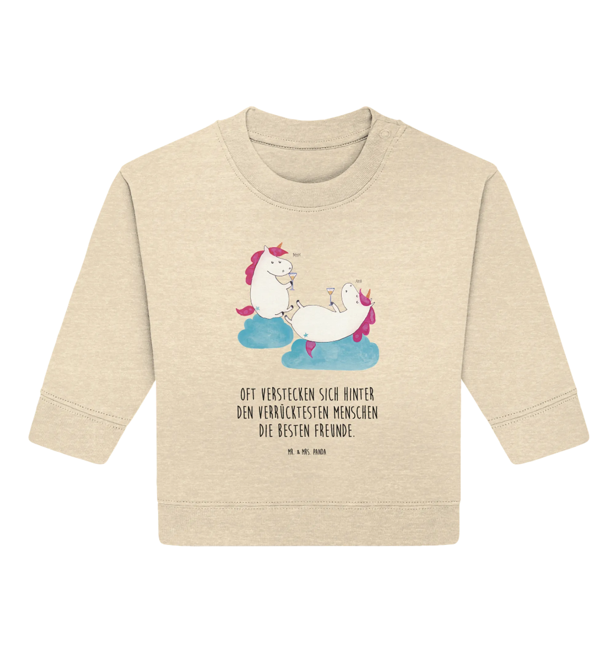 Der Organic Baby Pullover mit dem zauberhaften Einhorn Sekt-Motiv ist das perfekte Geschenk für kleine Einhornfreunde und ihre Familien! In der bunten Welt der Einhörner verstecken sich die besten Freunde, und dieser Pullover bringt nicht nur Freude, sondern auch ein bisschen Magie in den Alltag.