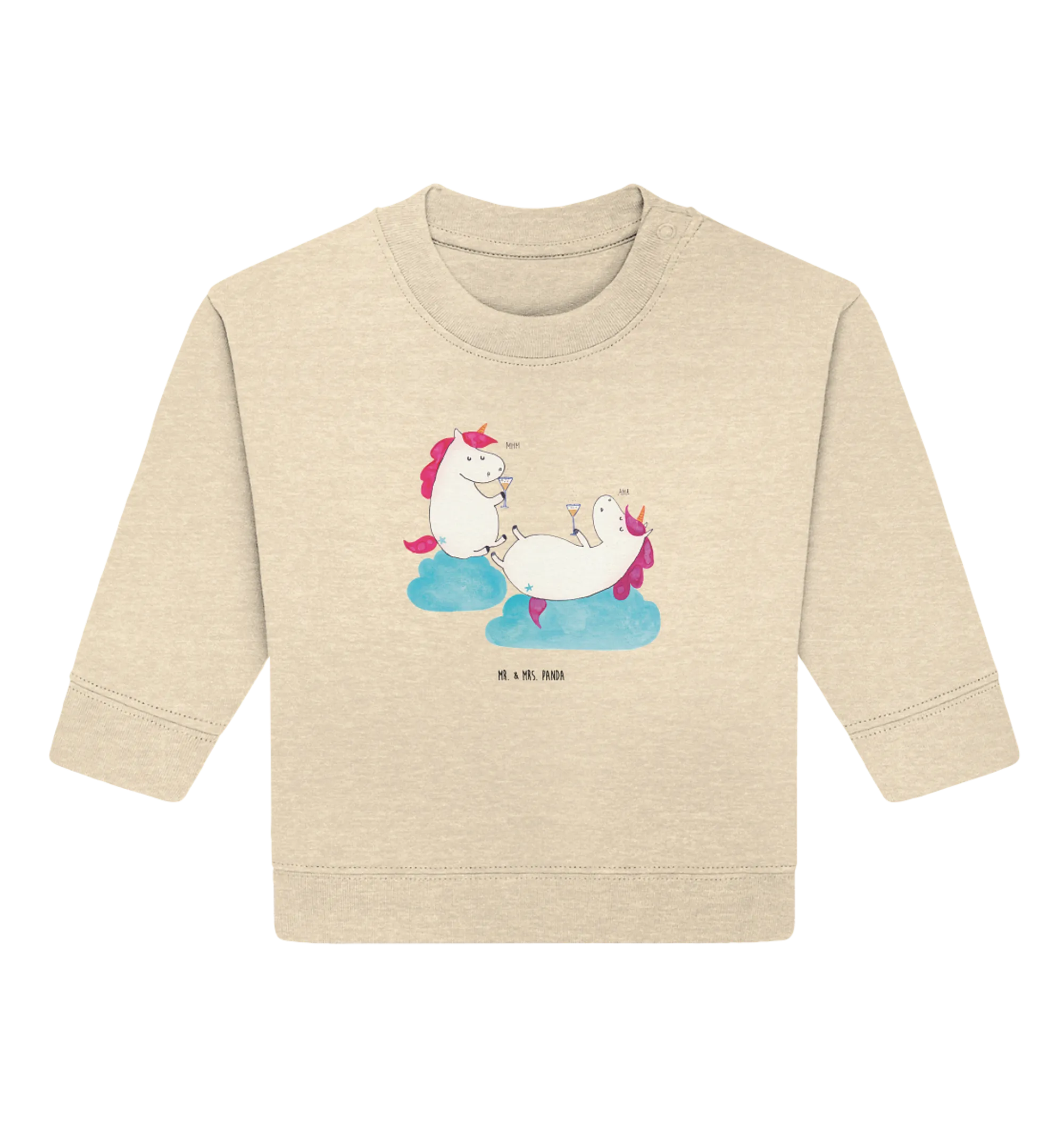 Der Organic Baby Pullover mit dem zauberhaften Motiv "Einhörner Sekt" aus der beliebten Einhorn-Kollektion von Mr. & Mrs. Panda ist das perfekte Geschenk für alle frisch gebackenen Eltern und ihre kleinen Wonneproppen!