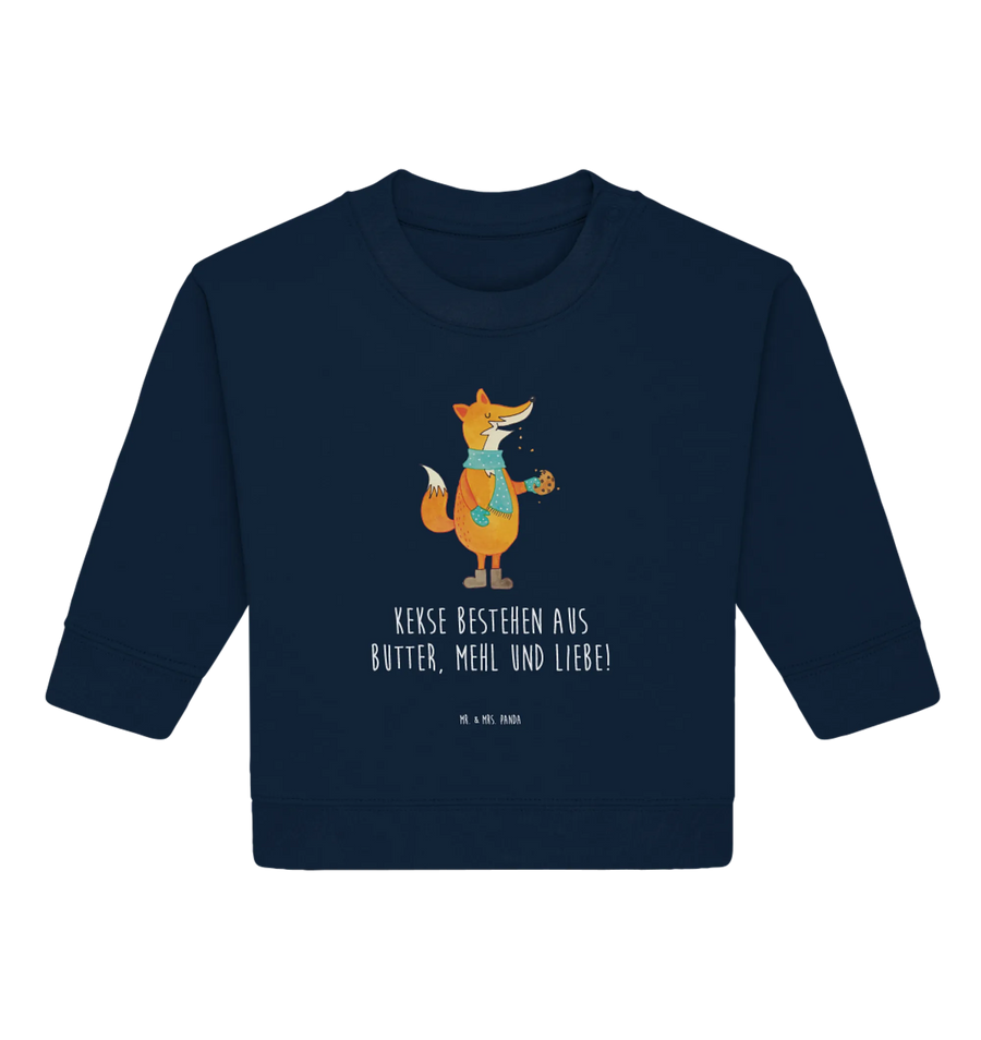 Entdecke den zauberhaften Organic Baby Pullover mit dem süßen Fuchs Keks Motiv aus der Fuchs Kollektion von Mr. & Mrs. Panda. Dieser Pullover ist nicht nur perfekt für die kalte Winterzeit, sondern auch ein ganz besonderes Geschenk für alle, die das Backen lieben. Mit dem Spruch 'Kekse bestehen aus Butter, Mehl und Liebe!' verleiht der Pullover deinem kleinen Liebling einen besonderen Charme.