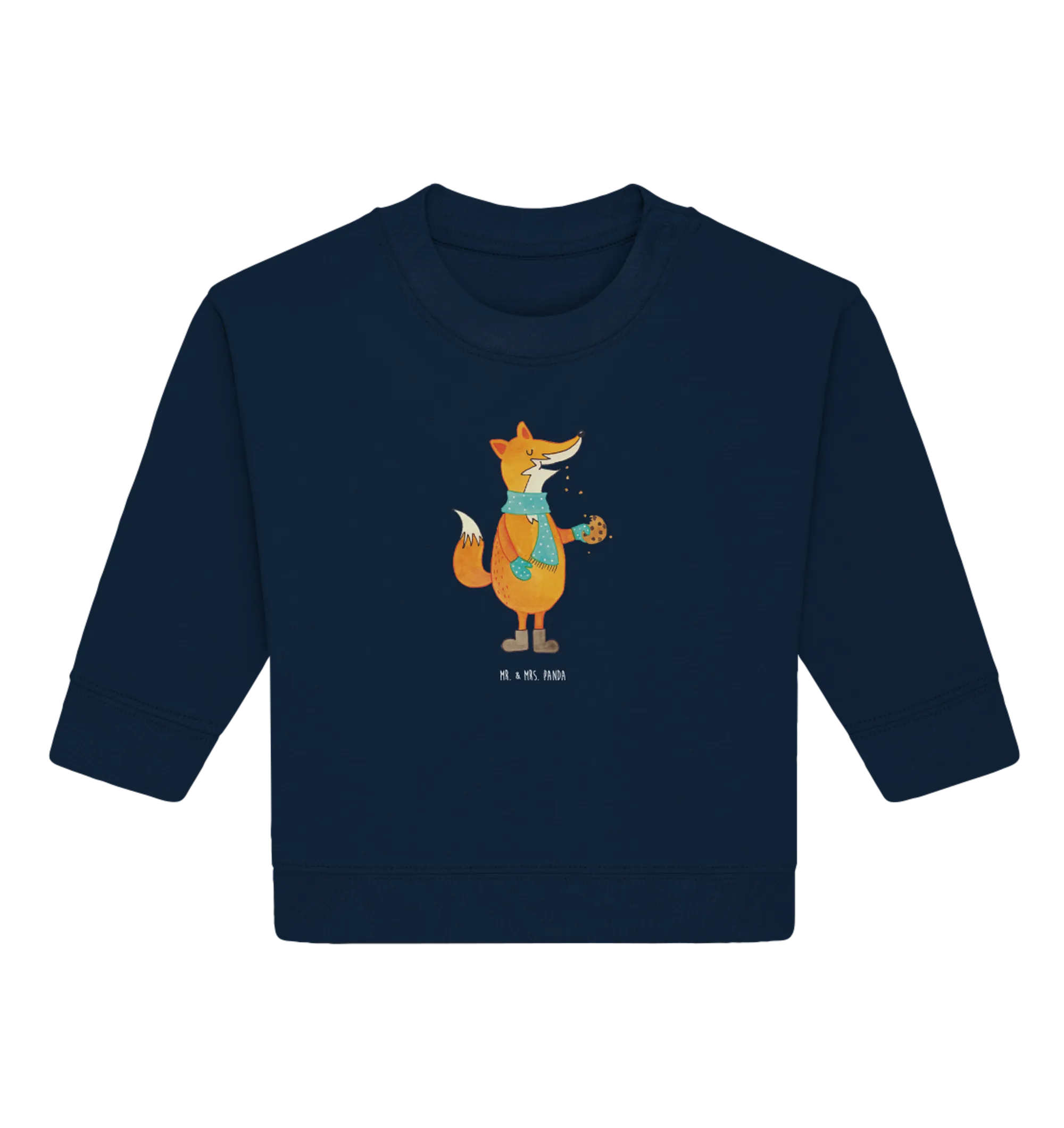 Wenn Du also auf der Suche nach einem liebevollen Geschenk bist, das sowohl praktisch als auch bezaubernd ist, dann ist dieser Organic Baby Pullover genau das Richtige. Mit dem Fuchs Keks Motiv aus der Fuchs Kollektion von Mr. & Mrs. Panda wird der Winter zu einer zauberhaften Zeit voller Lachen, Kekse und Liebe. Verschenke Freude!