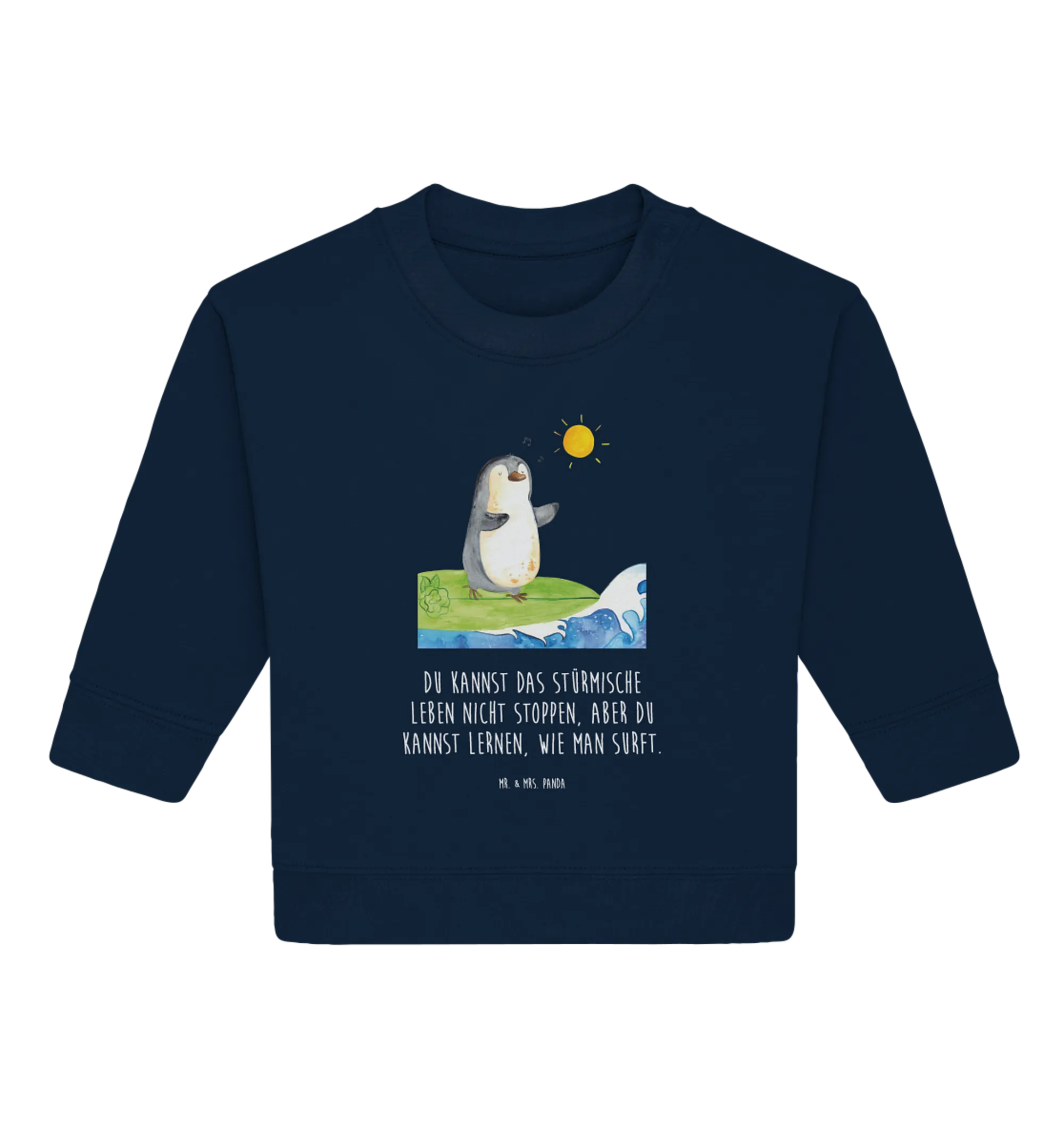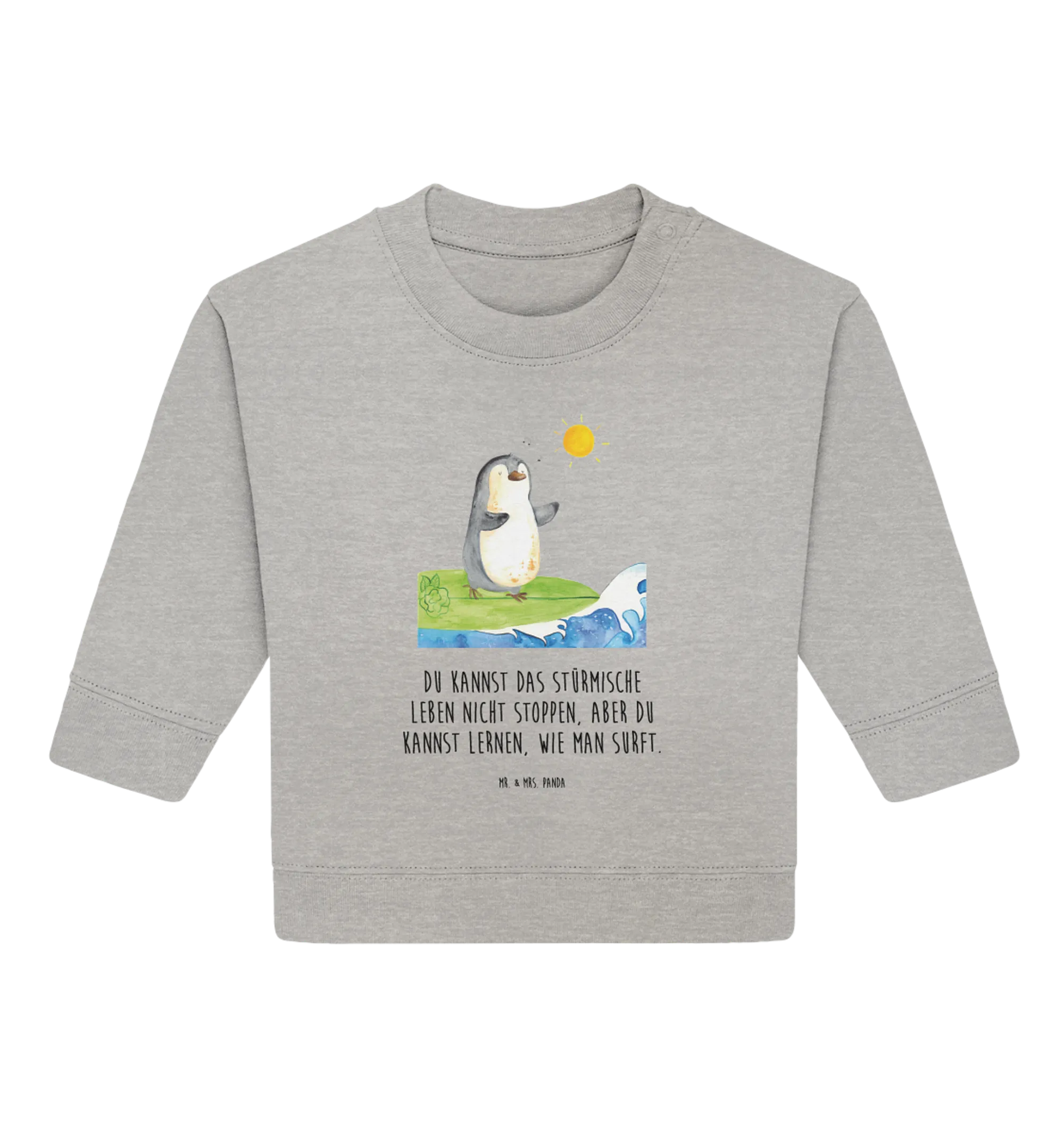 Entdecke den bezaubernden Organic Baby Pullover mit dem süßen Pinguin Surfer Motiv aus der exklusiven Pinguin - Kollektion von Mr. & Mrs. Panda! Dieser Baby Sweatshirt ist perfekt für kleine Abenteurer, die das Leben am Meer lieben. Der Pinguin, der mit seiner coolen Sonnenbrille auf dem Surfbrett sitzt, inspiriert deinen kleinen Schatz dazu, das stürmische Leben mit einem Lächeln zu meistern. Der Pullover kombiniert eine hochwertige Verarbeitung mit nachhaltigen Materialien – aus 100% ökologischer Baumwolle. Damit bleibt dein Baby nicht nur warm, sondern tut auch der Umwelt etwas Gutes!