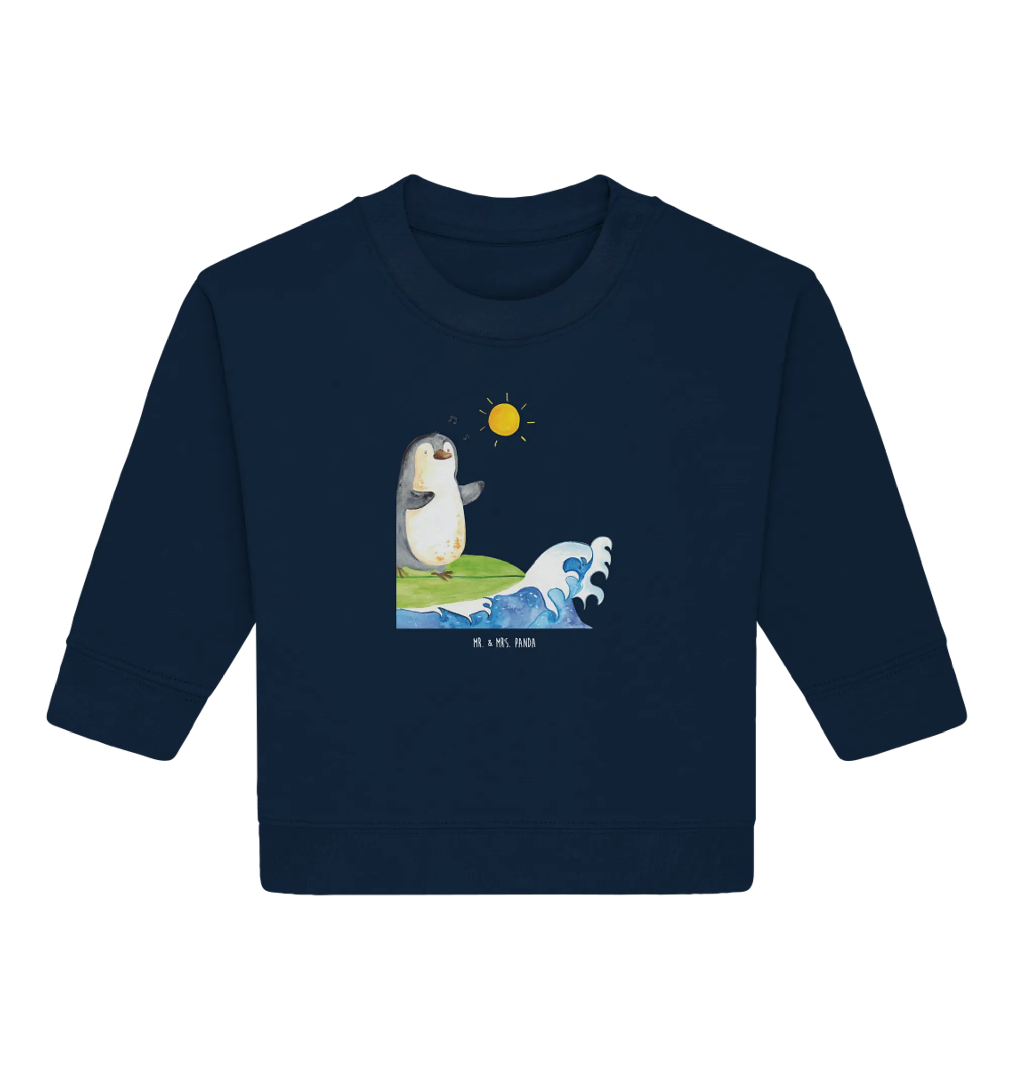 Stell dir vor, dein kleiner Schatz entdeckt die Welt – und das in einem Outfit, das genauso abenteuerlustig ist wie er selbst. Unser Organic Baby Pullover von Mr. & Mrs. Panda mit dem Pinguin Surfer Motiv bringt das Urlaubsfeeling direkt zu euch nach Hause! 🌊🐧
