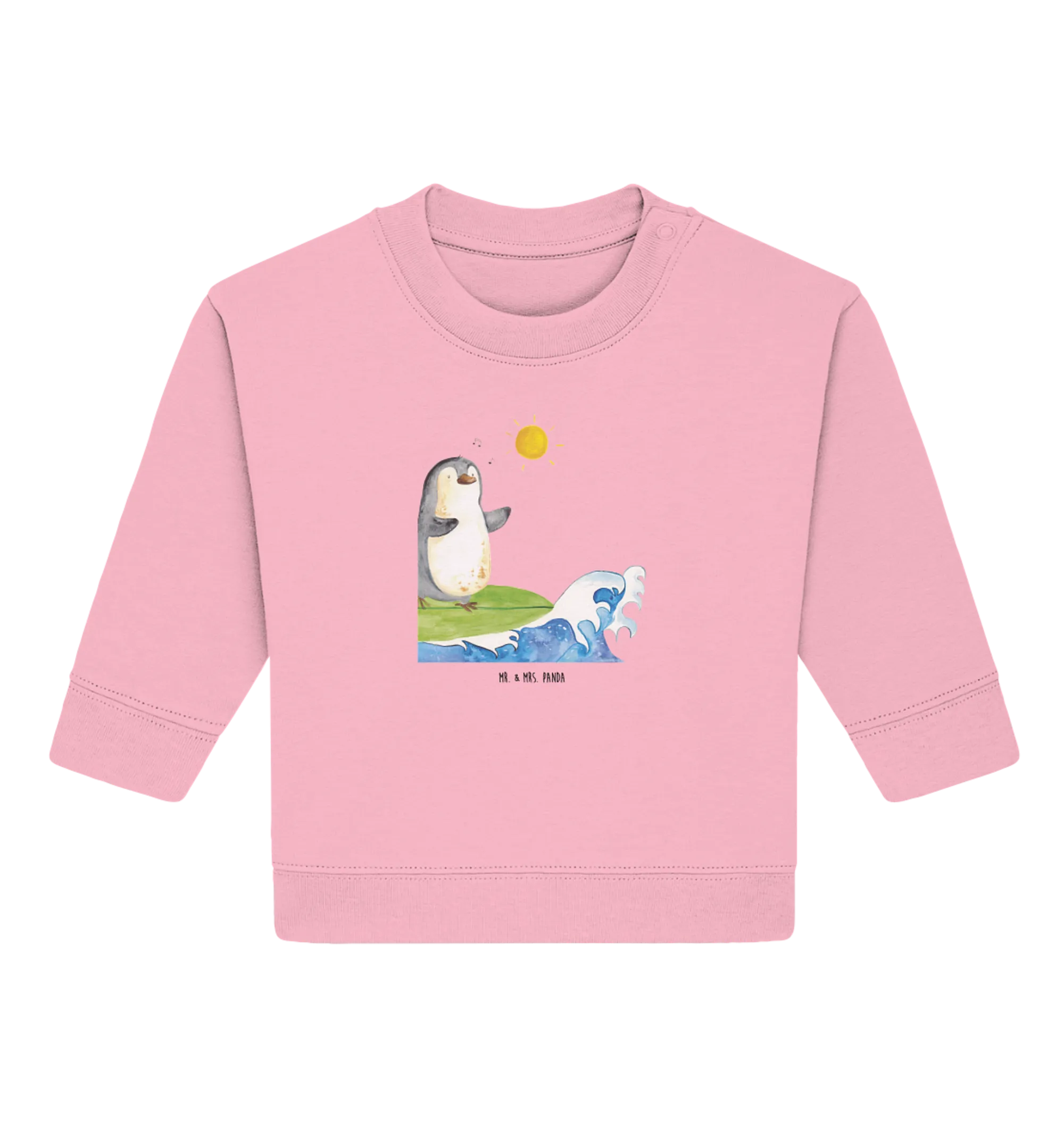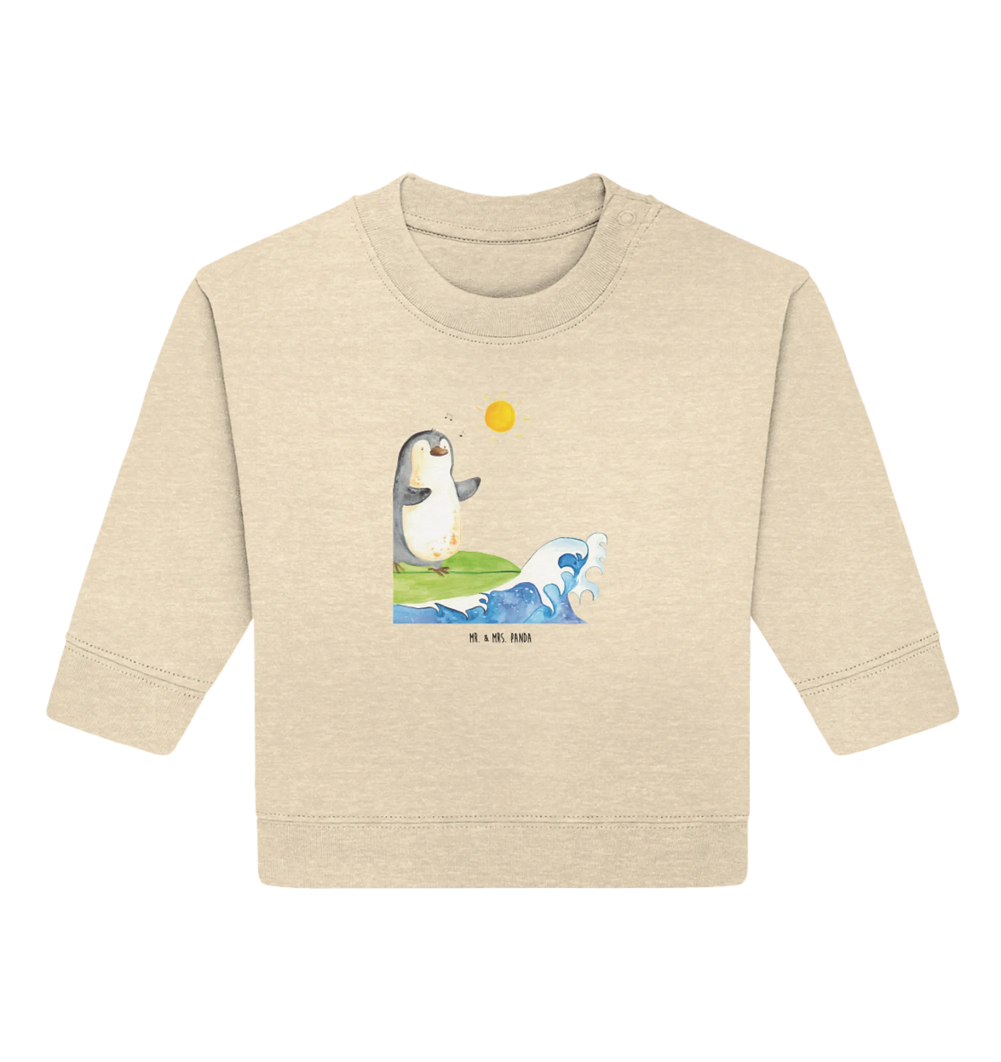 Entdecke den süßen Organic Baby Pullover mit dem Pinguin Surfer-Motiv aus der einzigartigen Pinguin-Kollektion von Mr. & Mrs. Panda!