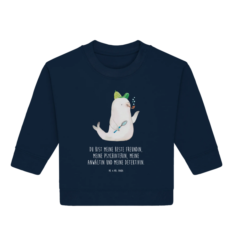 Das niedliche Design zeigt die Detektiv-Robbe, die auf heißer Spur ist und dafür die Hilfe deines kleinen Sprösslings benötigt. Ob beim Spielen, Kuscheln oder Ausflügen ins Freie, dieser Pullover ist perfekt geeignet für jede Gelegenheit. Die liebevoll gestaltete Robbe bringt nicht nur Freude, sondern regt auch die Fantasie an und zieht die Blicke aller auf sich.