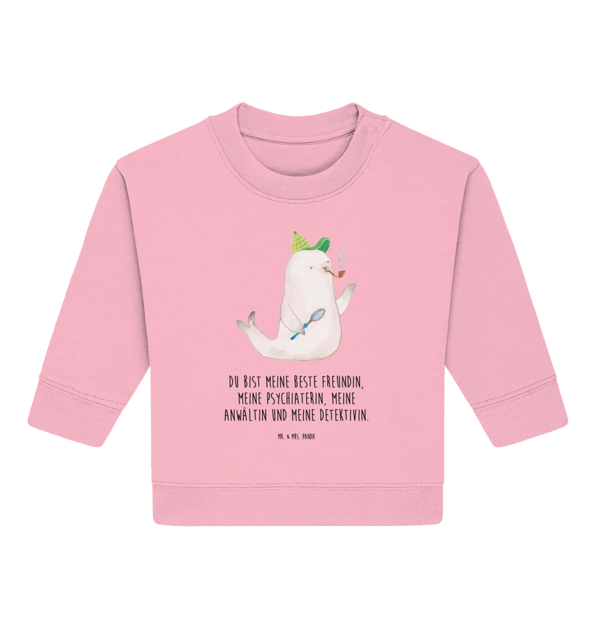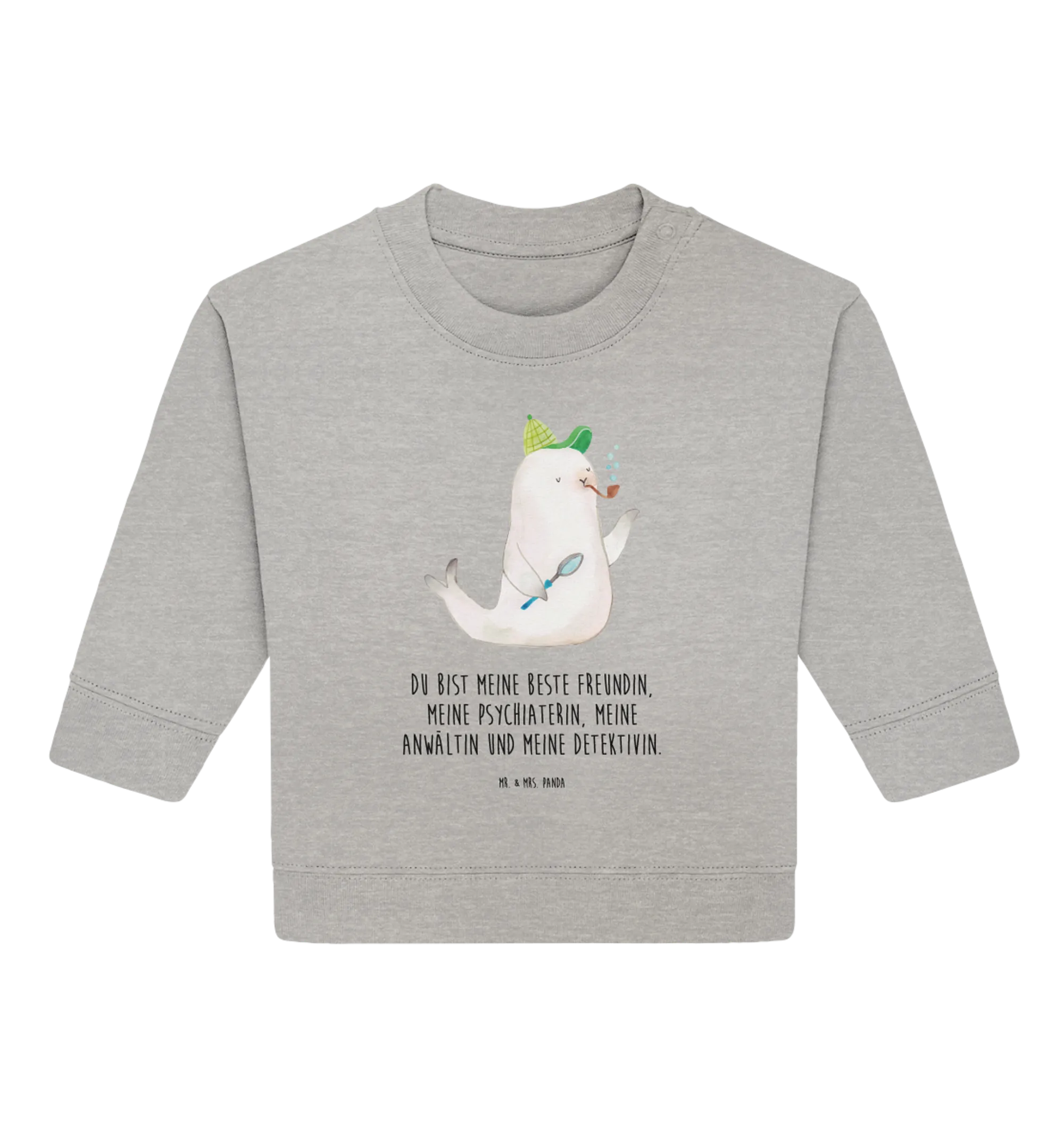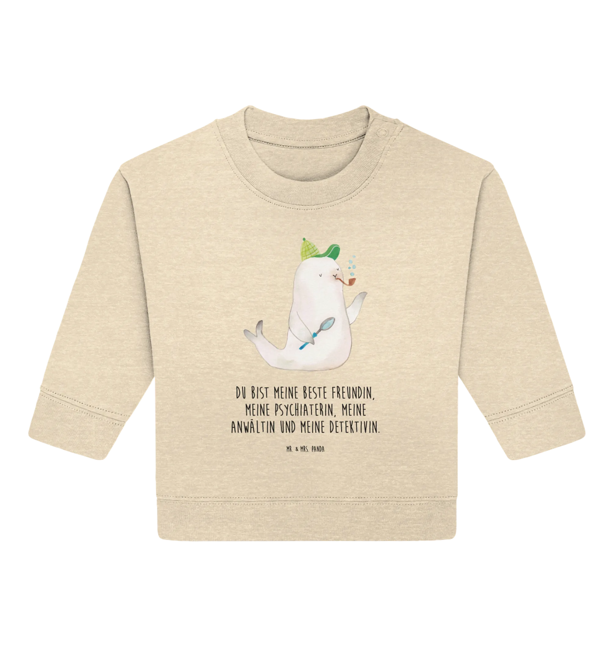 Wenn du also auf der Suche nach einem Geschenk bist, das sowohl praktisch als auch niedlich ist, dann ist der organic Baby Pullover mit dem Robbe Sherlock Motiv von Mr. & Mrs. Panda genau das Richtige. Überzeuge dich selbst von der Qualität und dem einzigartigen Design und bringe Kinderaugen zum Strahlen!