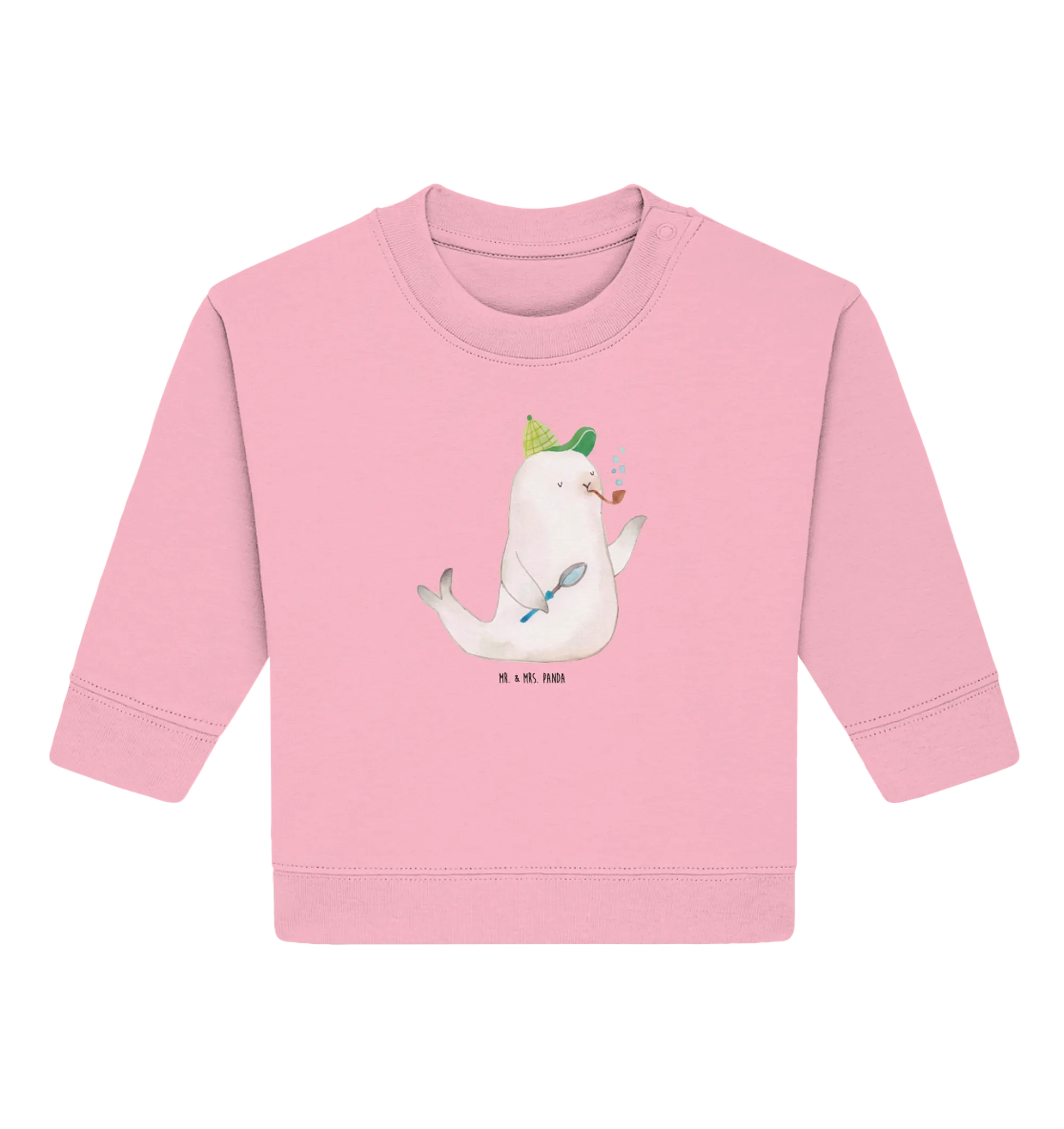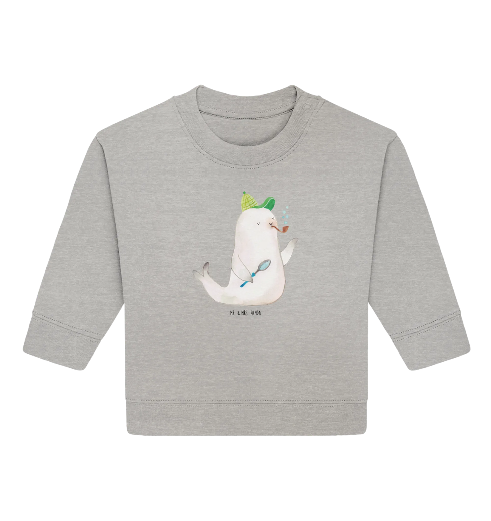 Der Organic Baby Pullover mit dem lustigen Motiv der Robbe Sherlock aus der Small World Kollektion von Mr. & Mrs. Panda ist die perfekte Wahl für kleine Abenteurer und deren Eltern. Dieser süße Pullover bietet nicht nur Komfort, sondern auch jede Menge Spaß und gute Laune! 🦭✨