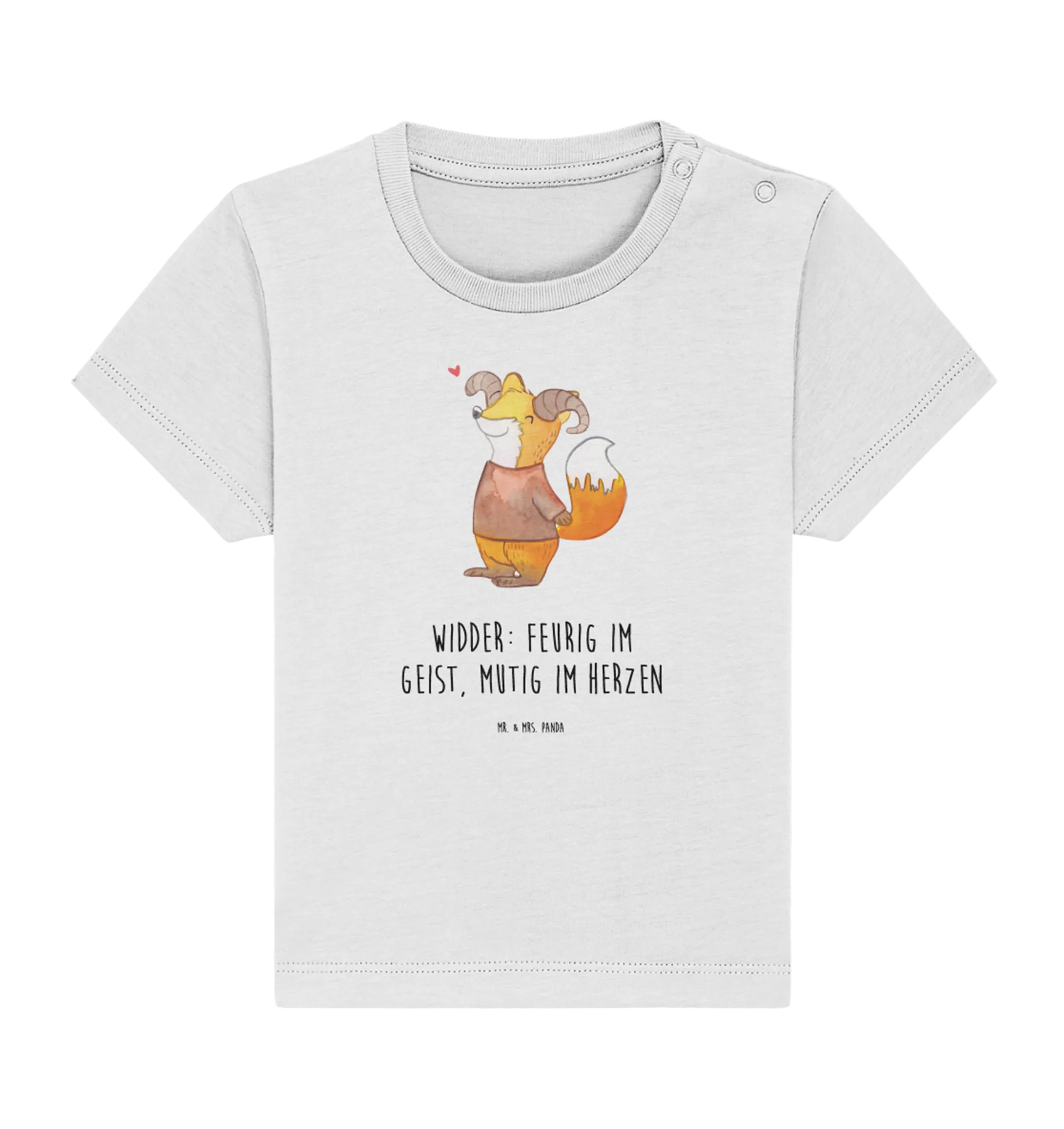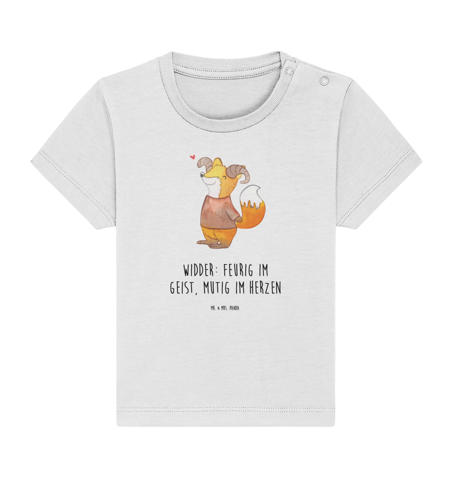Das niedliche Organic Baby Shirt mit dem zauberhaften Widder-Motiv aus der besonderen Sternzeichen-Kollektion von Mr. & Mrs. Panda ist das perfekte Geschenk für kleine Tierkreiszeichen-Liebhaber! Stell dir vor, dein Baby trägt ein Shirt, das nicht nur hübsch aussieht, sondern auch eine süße Geschichte erzählt! Unser Design zeigt einen verspielten Fuchs mit großen Widderhörnern. Diese Kombination aus Fuchs und Widder bringt nicht nur Freude zum Ausdruck, sondern vermittelt auch die feurige und mutige Energie, die das Sternzeichen Widder ausmacht.