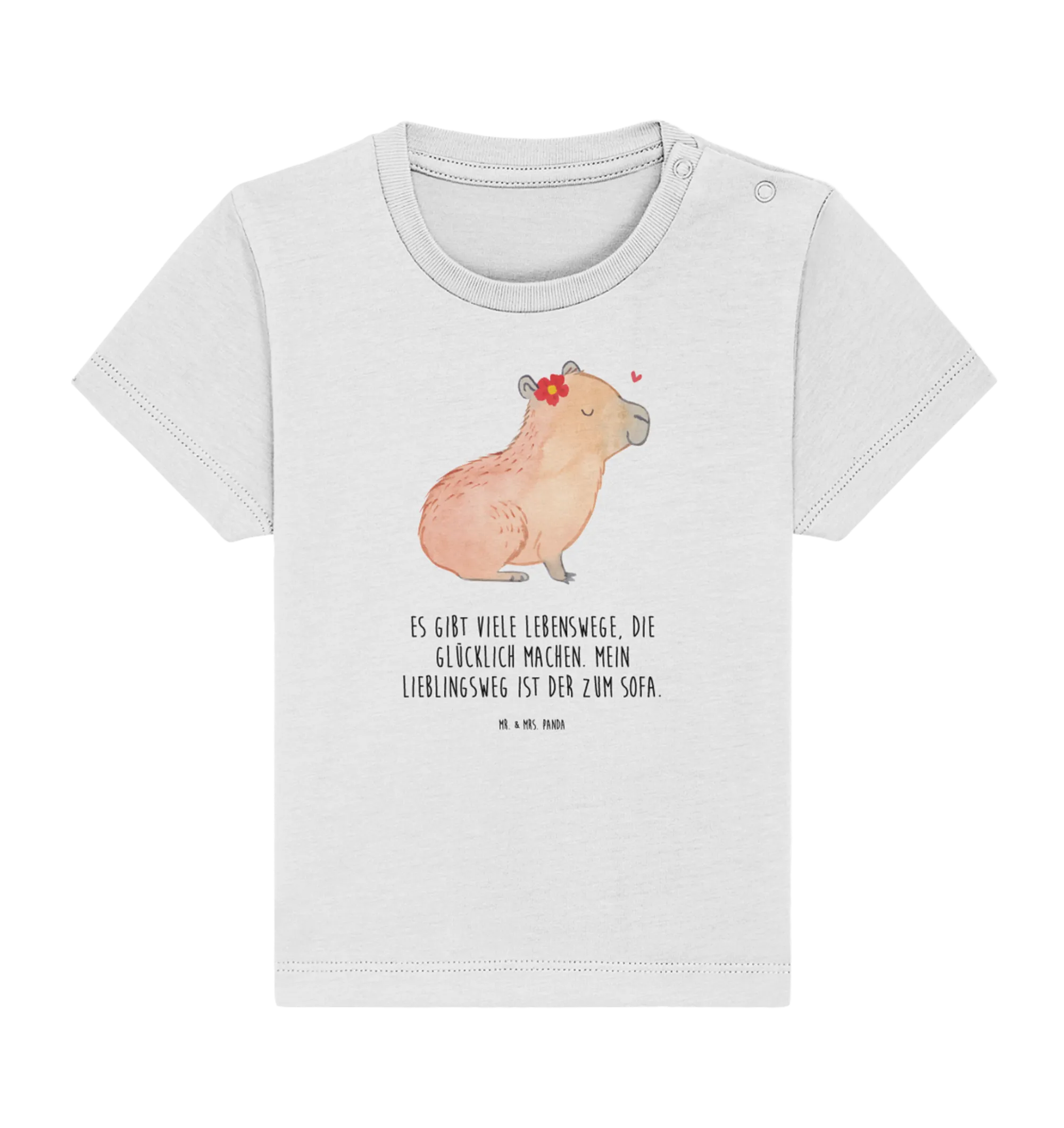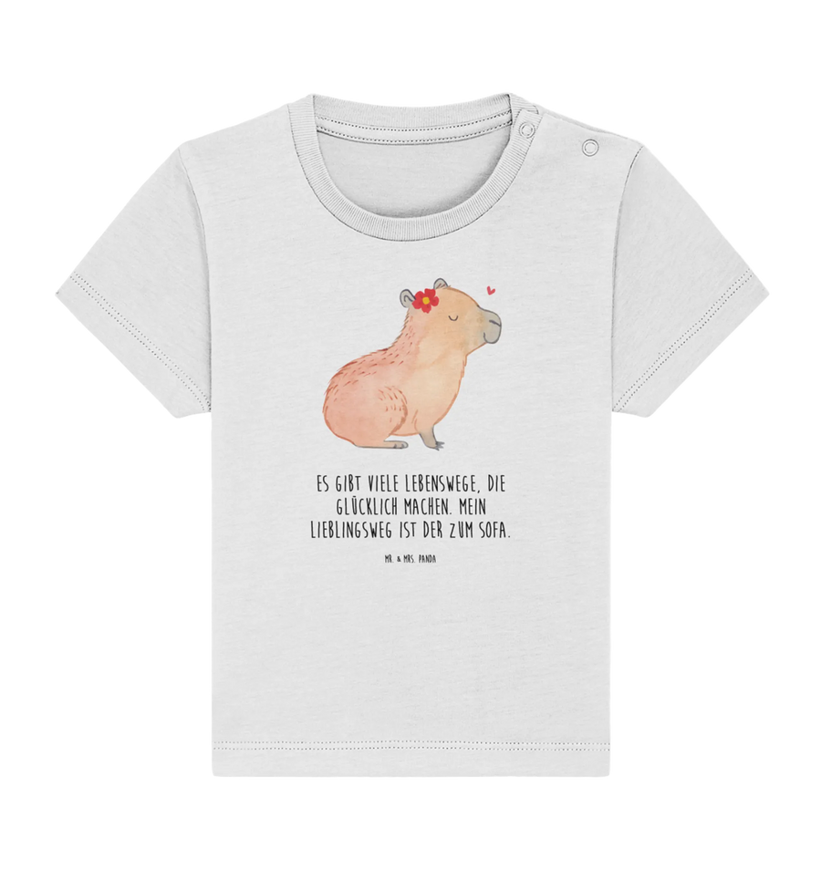 Egal ob als Geschenk zur Geburt, zum ersten Geburtstag oder einfach als besondere Überraschung zwischendurch – dieses Capybara-Shirt bringt viel Freude und Lebensfreude in den Alltag. Durch die charmante Illustration aus der kleinen Welt (Small World) Kollektion von Mr. & Mrs. Panda, ist es ein ganz besonderes Teil, welches bei jedem Anlass eine gute Figur macht.