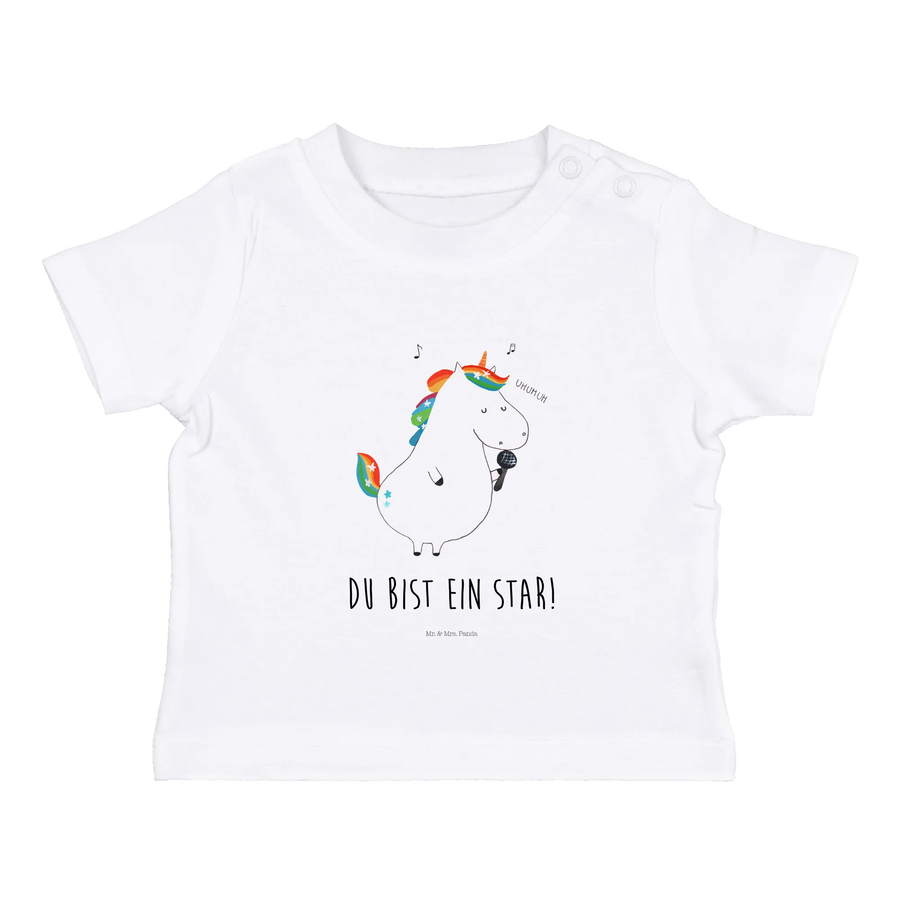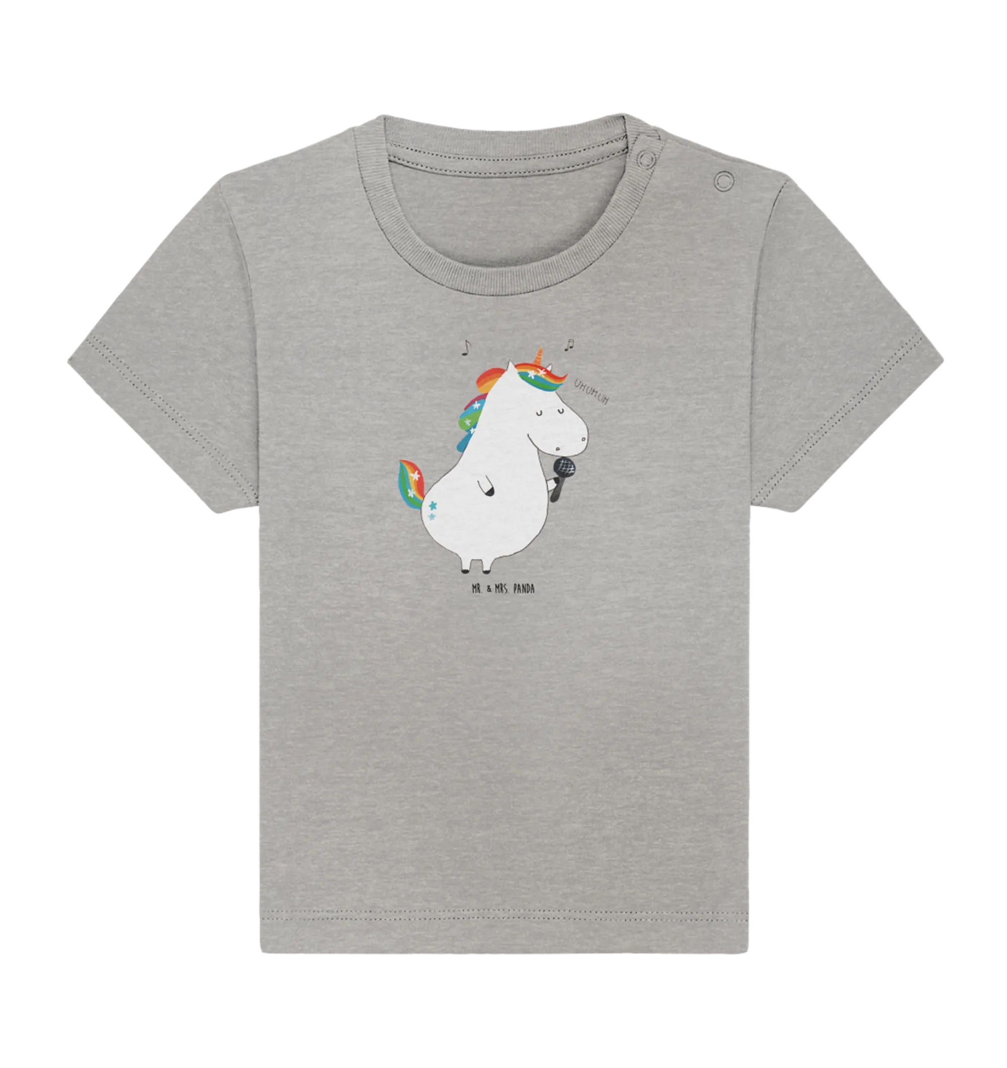 Das Organic Baby Shirt 'Einhorn Sänger' aus der zauberhaften Einhorn-Kollektion von Mr. & Mrs. Panda ist der perfekte Begleiter für kleine Einhornliebhaber! Mit seinem einzigartigen Design, das ein fröhliches Einhorn zeigt, das begeistert in ein Mikrofon singt, bringt es Freude in den Alltag jedes Babys.