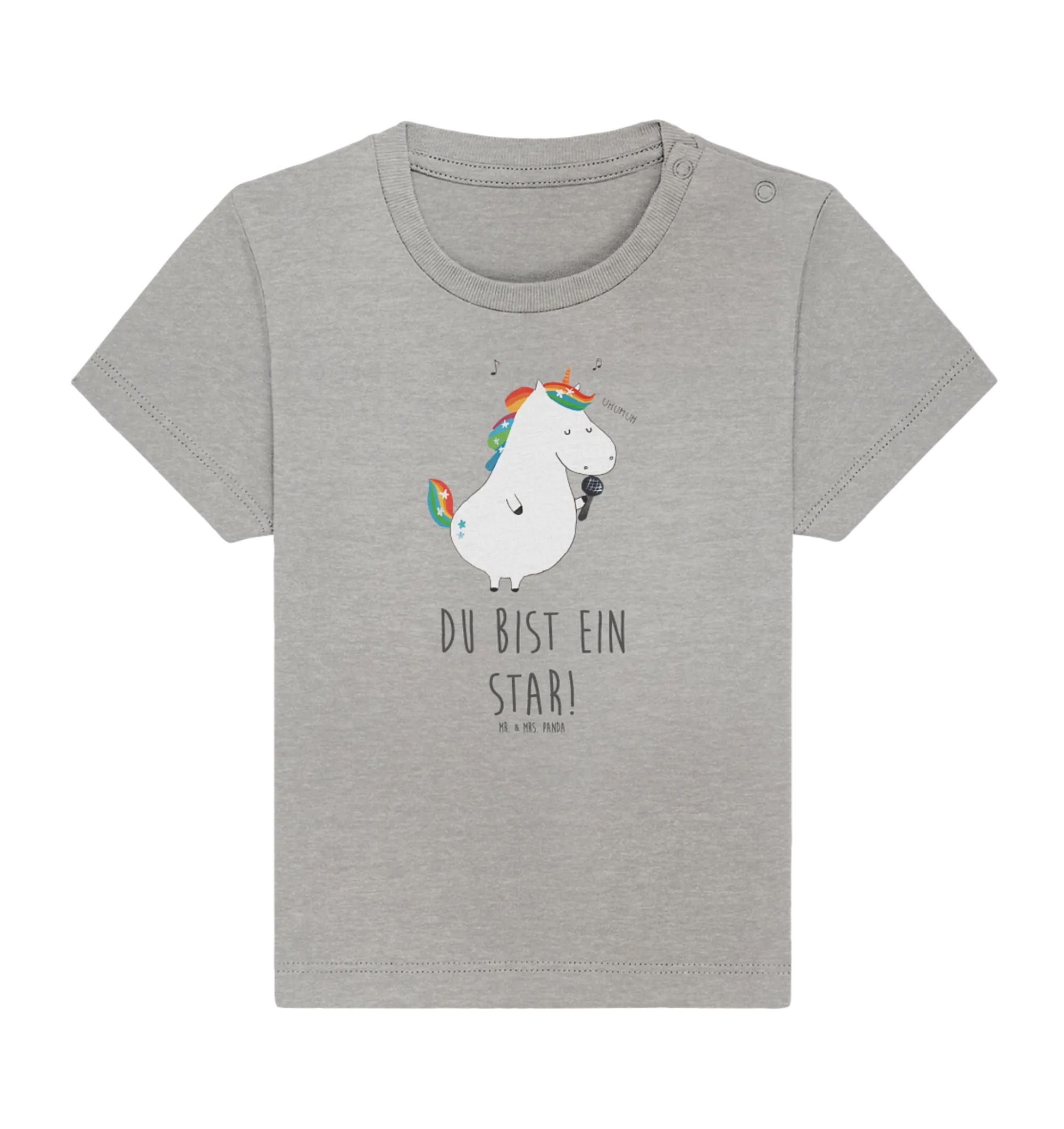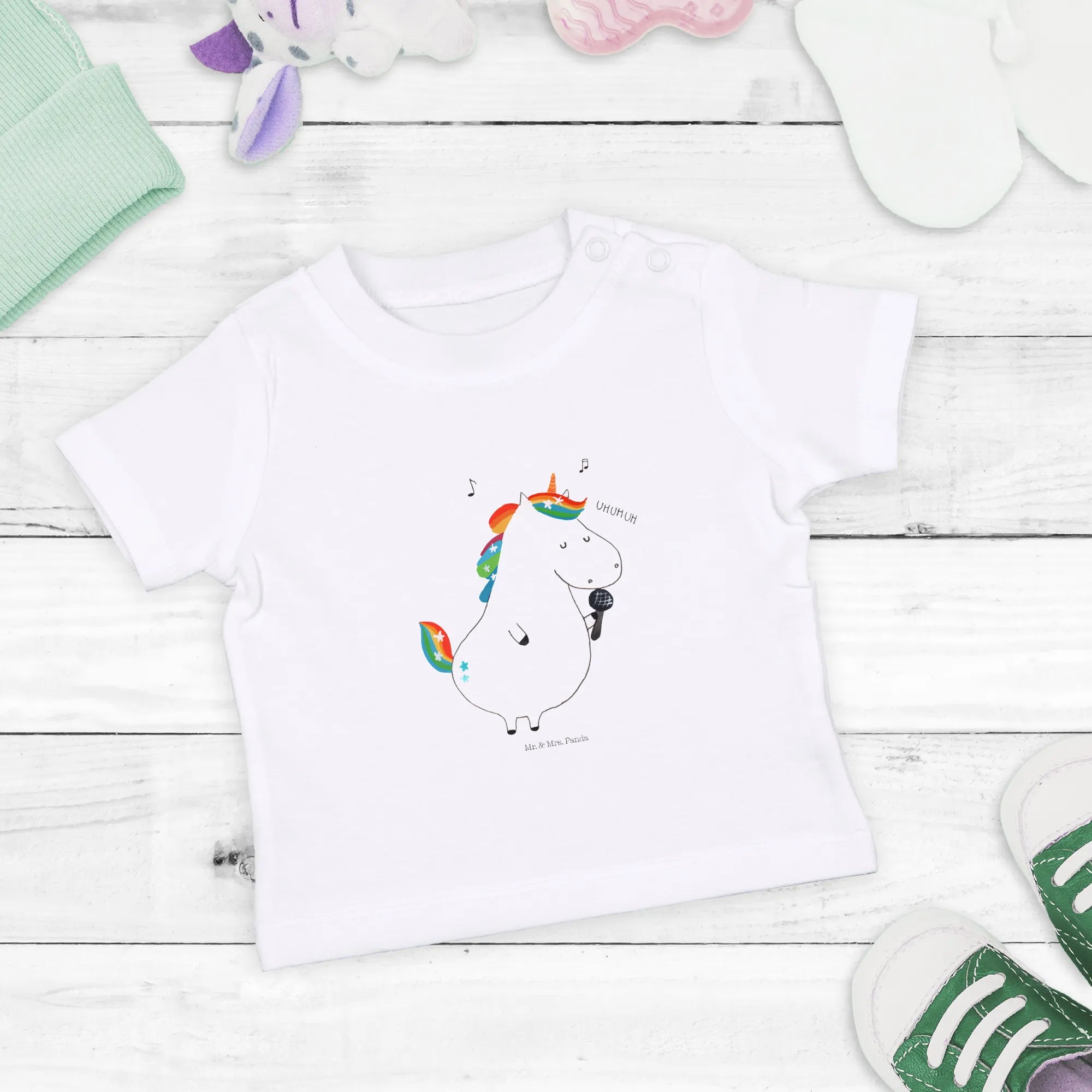 Das Organic Baby Shirt "Einhorn Sänger" aus der zauberhaften Einhorn-Kollektion von Mr. & Mrs. Panda ist der perfekte Begleiter für die kleinsten Einhorn-Fans! Mit seinem liebevoll handgezeichneten Motiv von einem Einhorn, das voller Begeisterung in ein Mikrofon singt, zieht dieses Shirt alle Blicke auf sich. Es ist nicht nur ein Blickfang, sondern auch ein wunderbares Geschenk für viele besondere Anlässe: sei es ein Geburtstag, eine Feier oder einfach nur, um einem kleinen Schatz eine Freude zu bereiten.