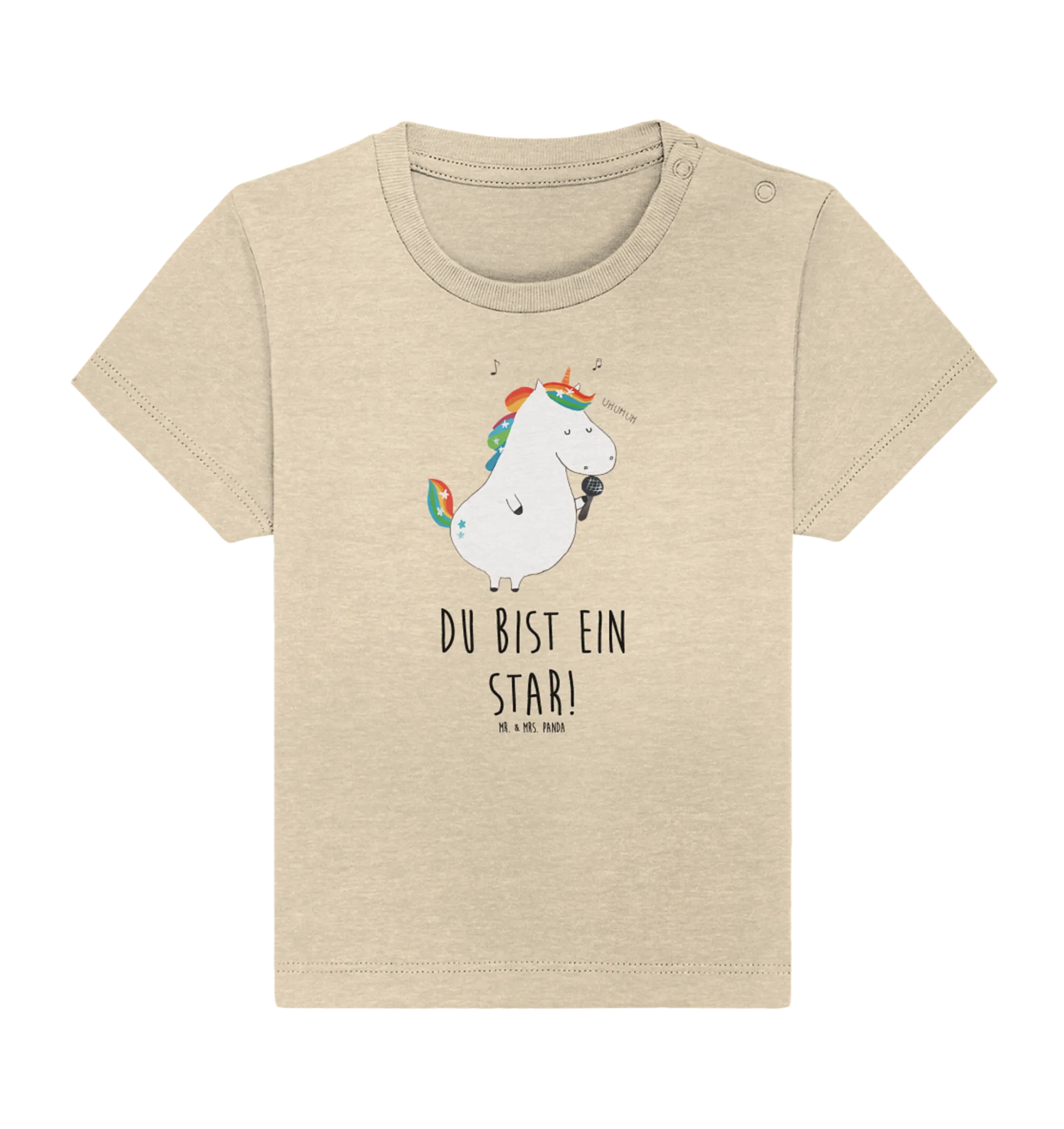 Verschenke Freude mit dem Organic Baby Shirt „Einhorn Sänger“ – das perfekte Geschenk für jeden Anlass. Es ist nicht nur ein Kleidungstück, sondern ein kleiner Traum, der wahr wird. Hol dir dieses bezaubernde Shirt und mach dein Baby zum Star – denn du weißt ja, wie es heißt: „Du bist ein Star!“. Lass die Feier beginnen und bringe Farbe und Lebensfreude in den Alltag deines kleinen Schatzes mit diesem besonderen Einhorn Shirt von Mr. & Mrs. Panda.