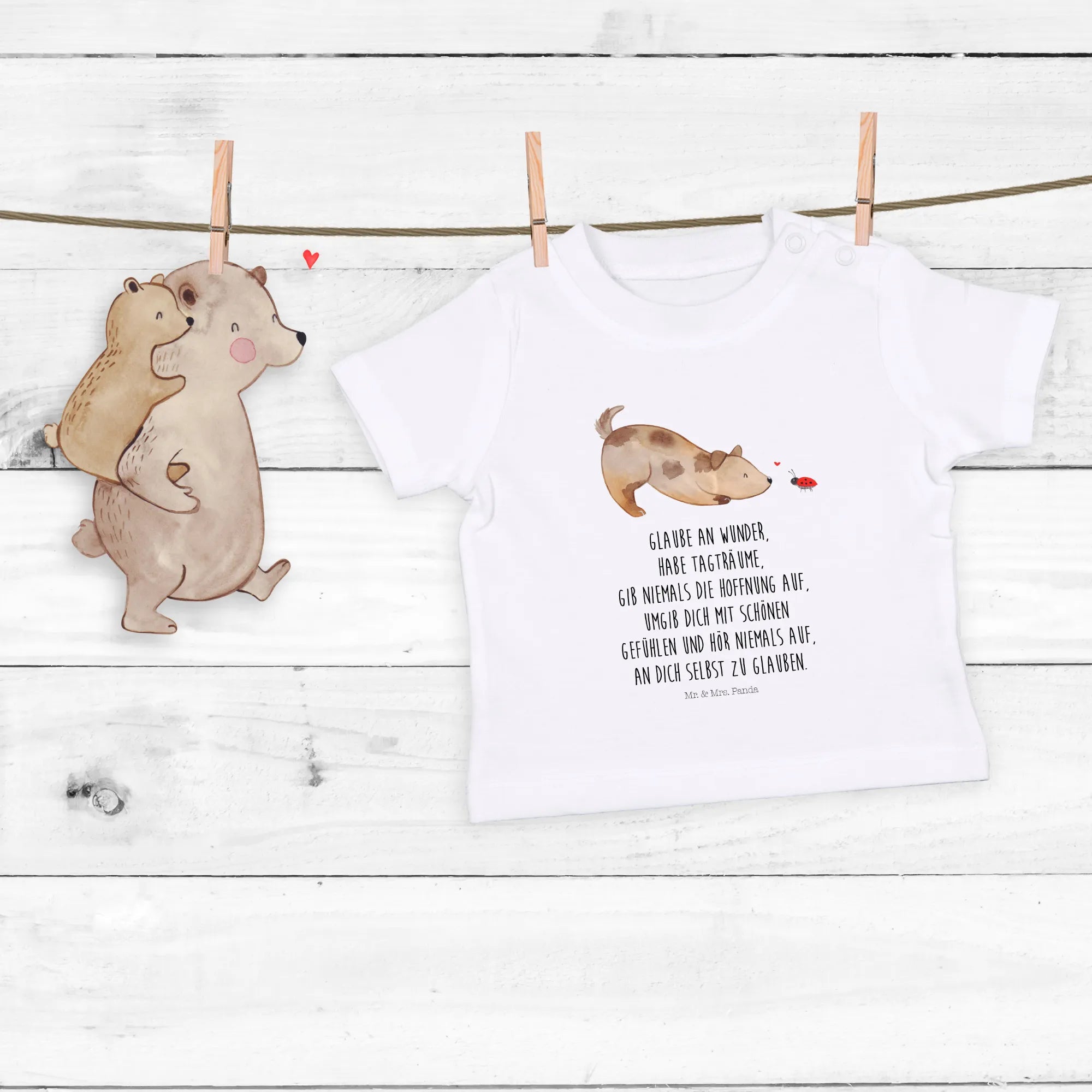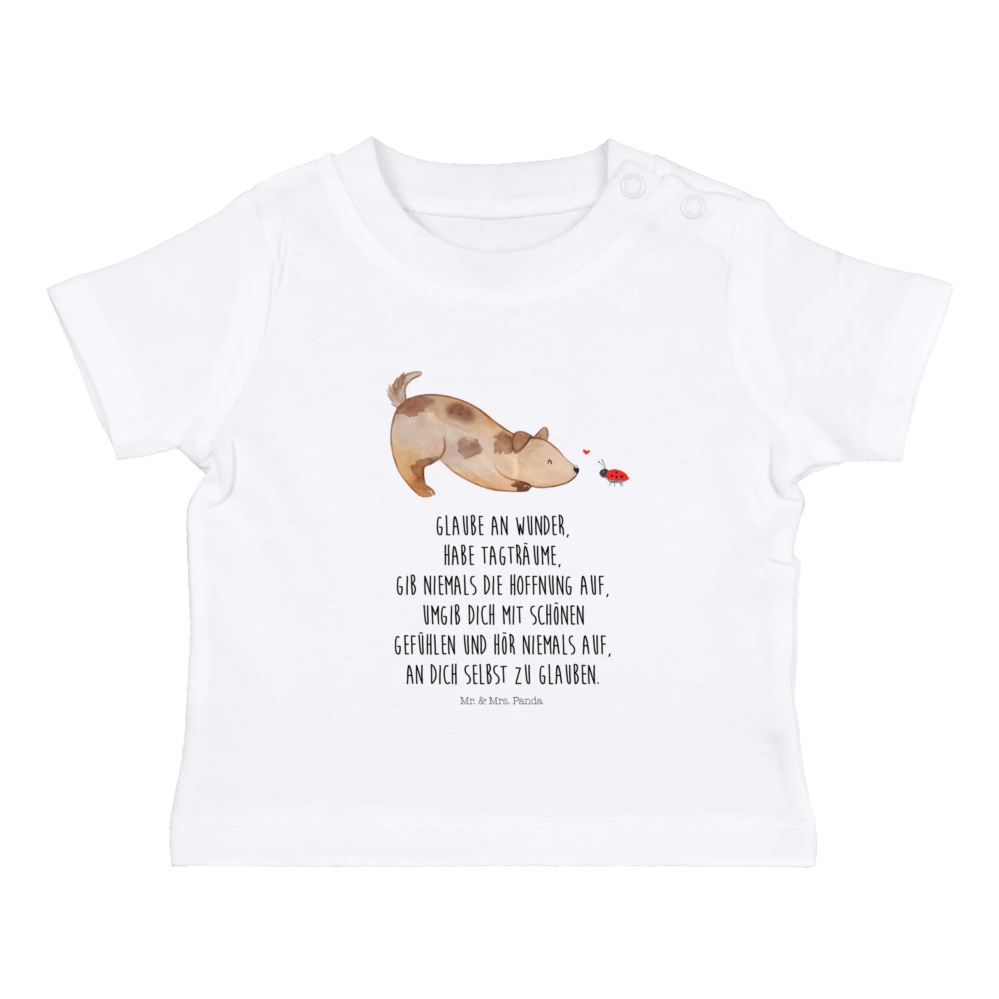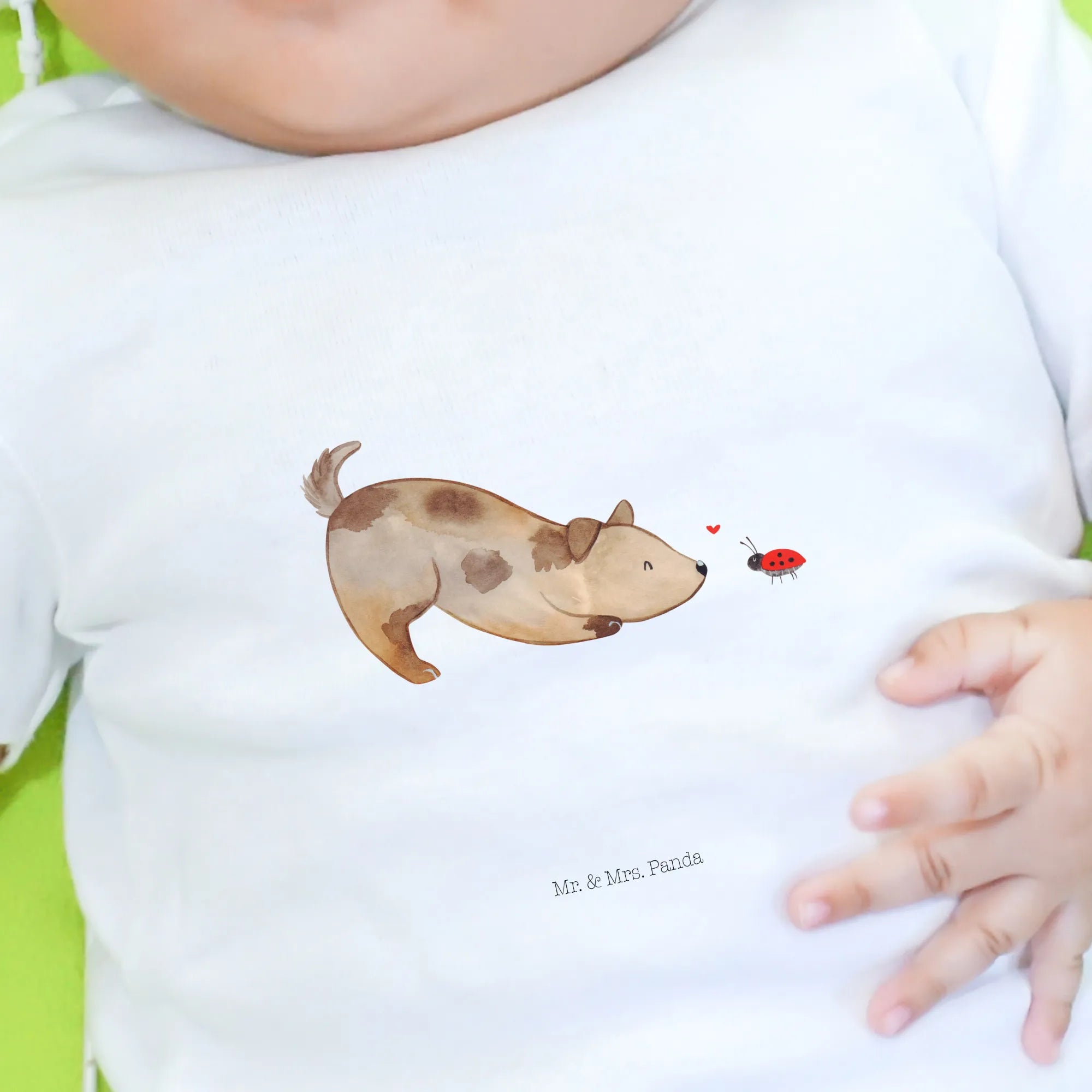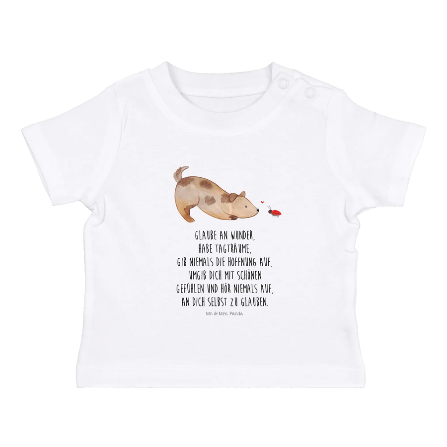 Mache das Baby zur kleinen Modeikone unter den Freunden und schaffe unvergessliche Erinnerungen mit dem niedlichen "Hund Marienkäfer" Shirt. Es ist mehr als nur ein Kleidungsstück – es ist ein Symbol für Liebe, Freude und das Leben mit unseren geliebten Haustieren! Komm in die Welt von Mr. & Mrs. Panda und entdecke weitere tolle Produkte aus unserer Hunde Kollektion!