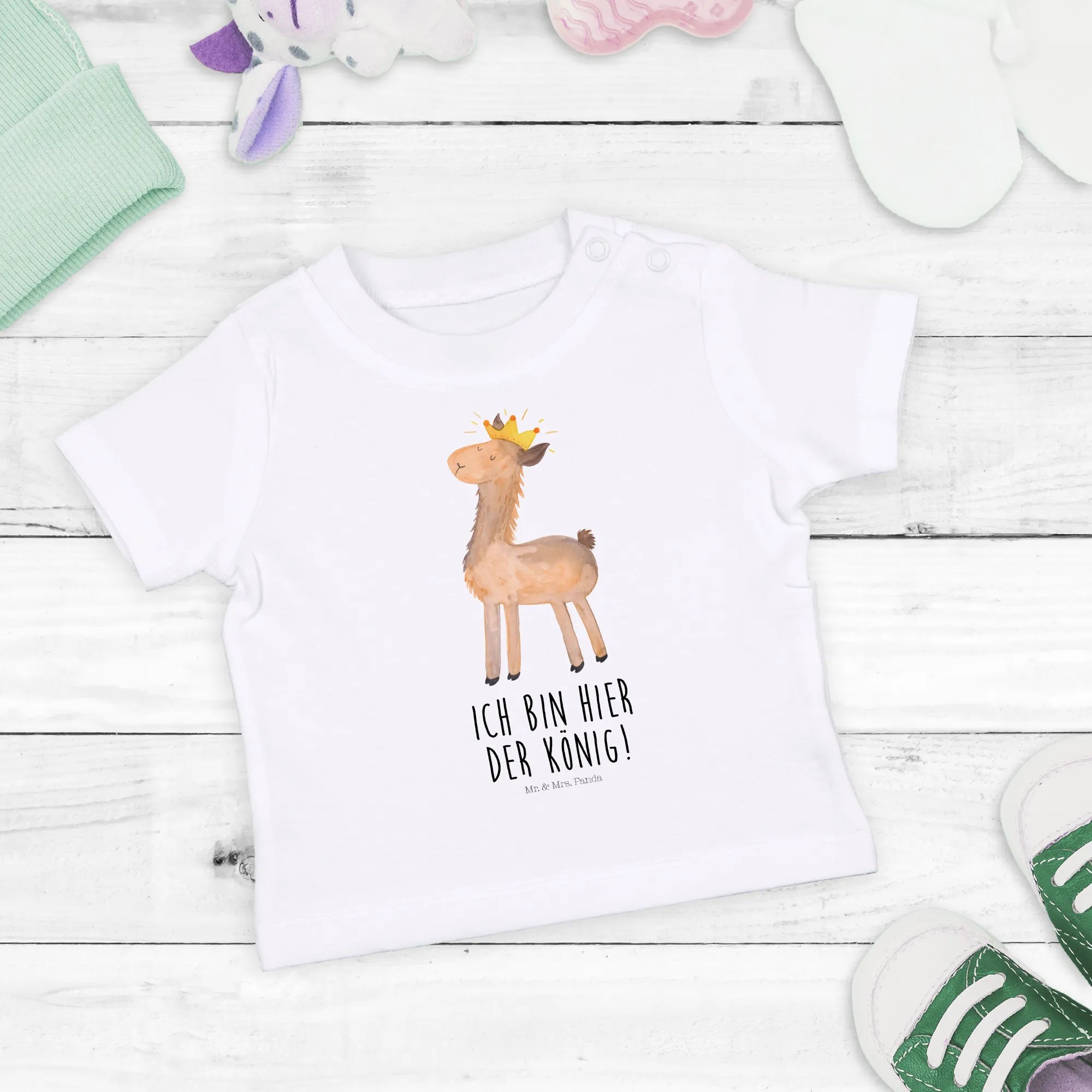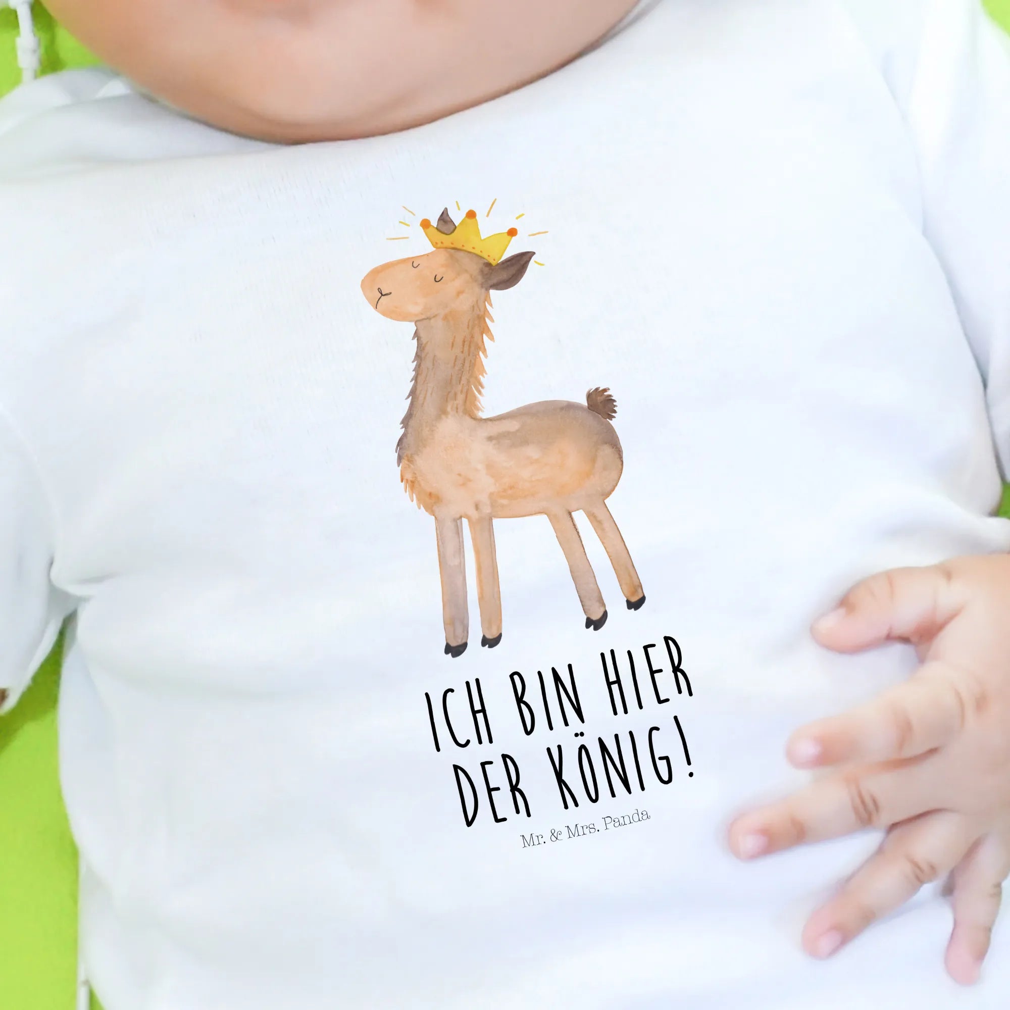Das süße Organic Baby Shirt 'Lama König' aus der bezaubernden Lama-Kollektion von Mr. & Mrs. Panda ist das perfekte Geschenk für kleine Abenteurer und stolze Eltern! Mit seinem niedlichen Motiv eines fantasievollen Lamas, das eine Krone trägt und dem Slogan 'Ich bin hier der König!', bringt dieses T-Shirt nicht nur Farbe ins Leben, sondern versprüht auch Freude und Charme.